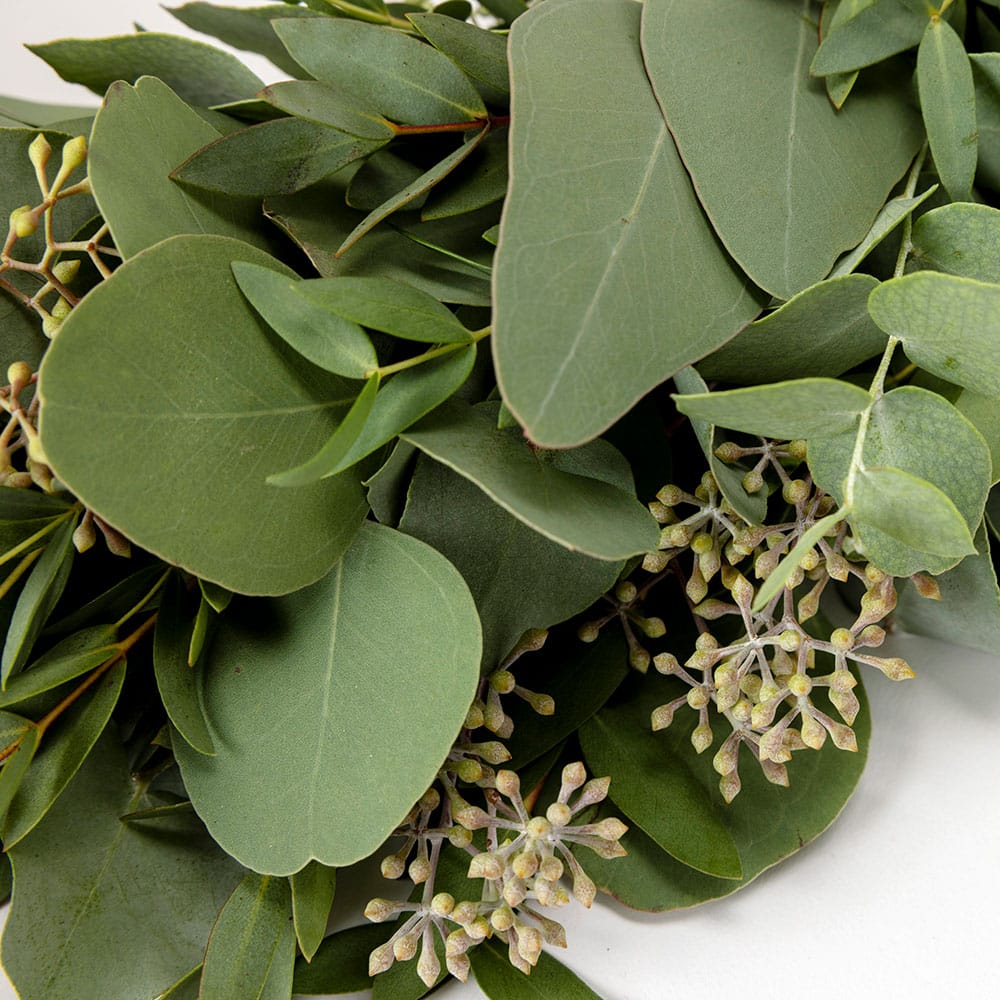 Avec la couronne d'eucalyptus, tu obtiens un accessoire élégant et moderne pour ta période de l'Avent. Pour cette couronne, 3-4 sortes d'eucalyptus sont joliment disposées sur la couronne de paille. Pour nos couronnes de l'Avent aussi, nous travaillons de la manière la plus naturelle possible et nous n'utilisons donc pas de colle à chaud, de colle en spray, de spray de couleur ou de mousse à piquer.