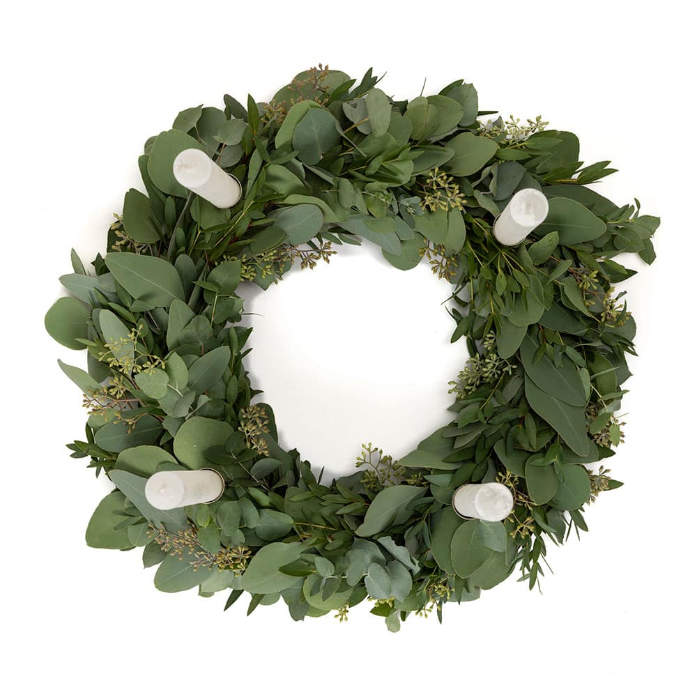 Couronne de l'Avent en eucalyptus, bougies ivoire - environ 40 cm de diamètre
