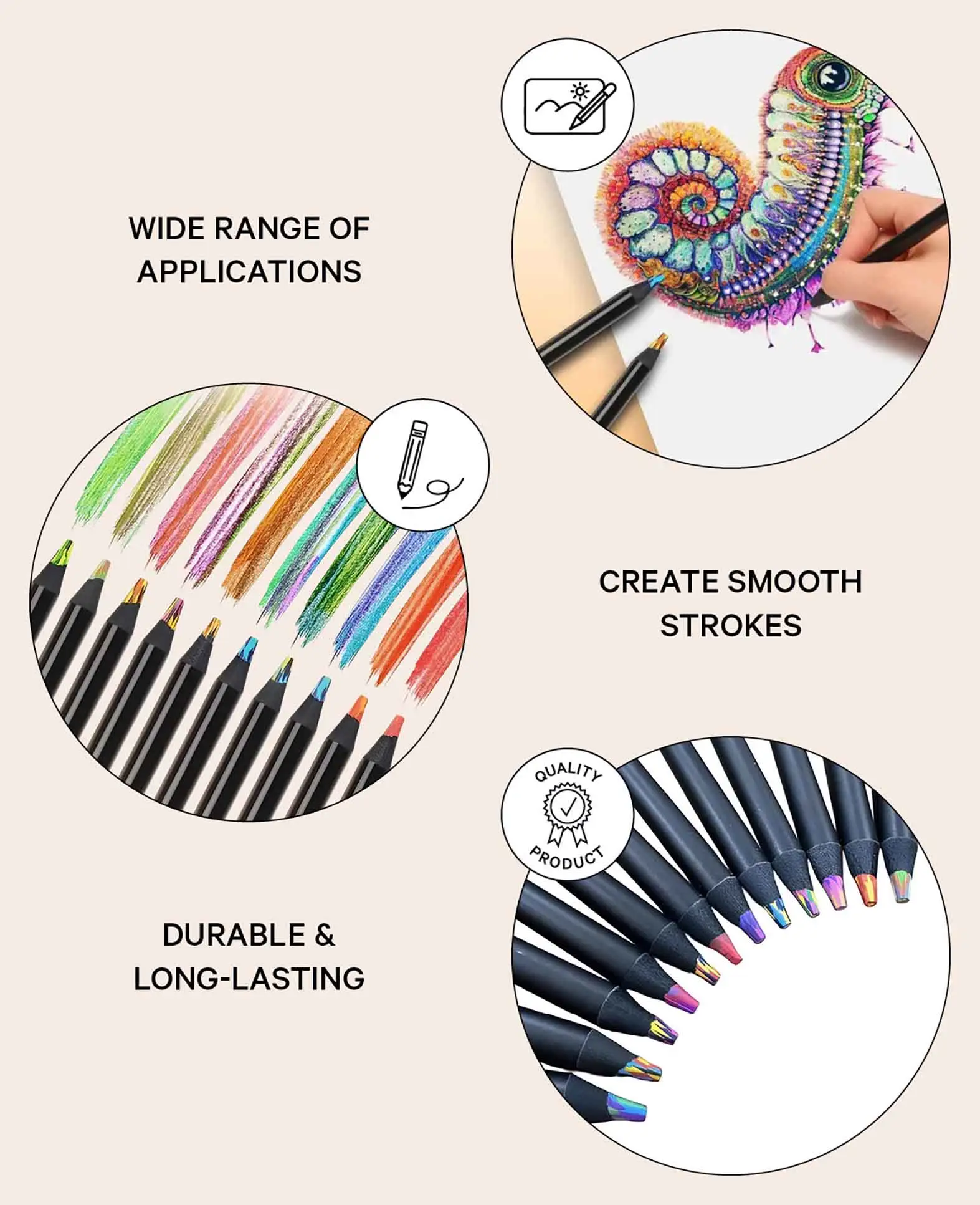 Crayons de couleur en bois avec un dégradé de couleurs arc-en-ciel :