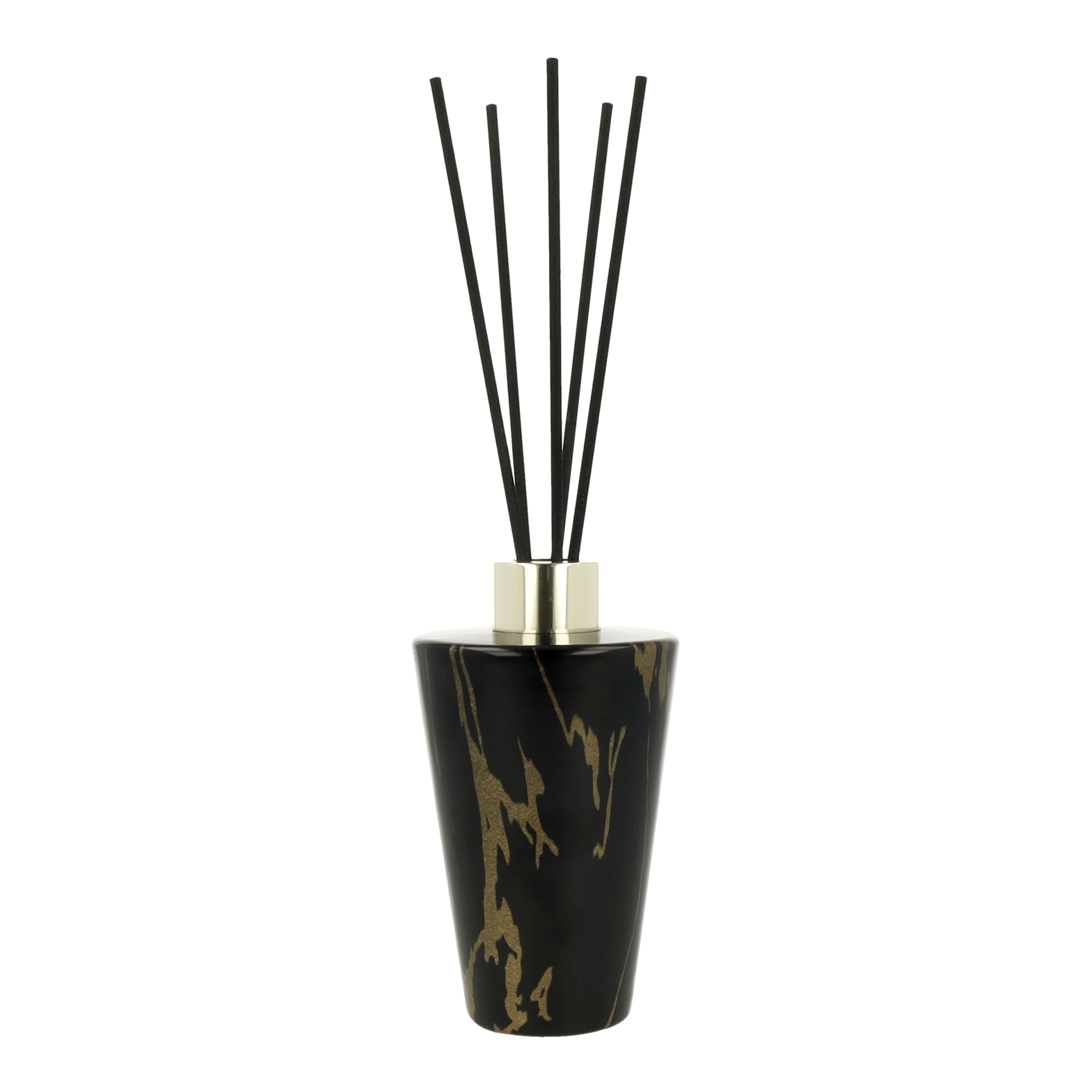 Verleihe deinem Zuhause ein luxuriöses Statement mit dem Reed Diffuser Cone Marble. Die stilvolle konische Glasform im edlen Marmor-Look macht diesen Diffuser zu einem exquisiten Dekorationsobjekt. Erlebe, wie sich das Design nahtlos in moderne oder klassische Interieurs einfügt und dabei konstant einen subtilen, einladenden Duft im Raum verteilt. Die dunklen Stäbchen bilden einen eleganten Kontrast zum Marmor-Finish und sorgen für eine langanhaltende und gleichmässige Beduftung – ganz ohne Flamme.
