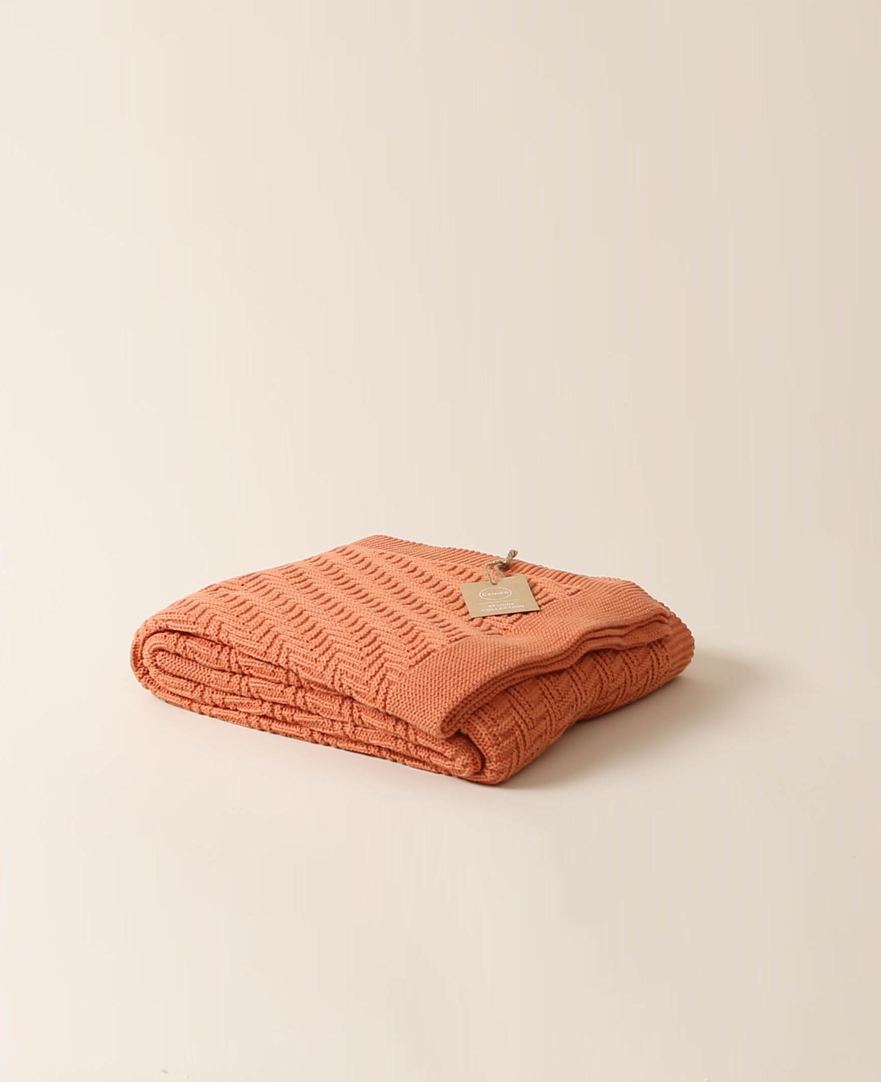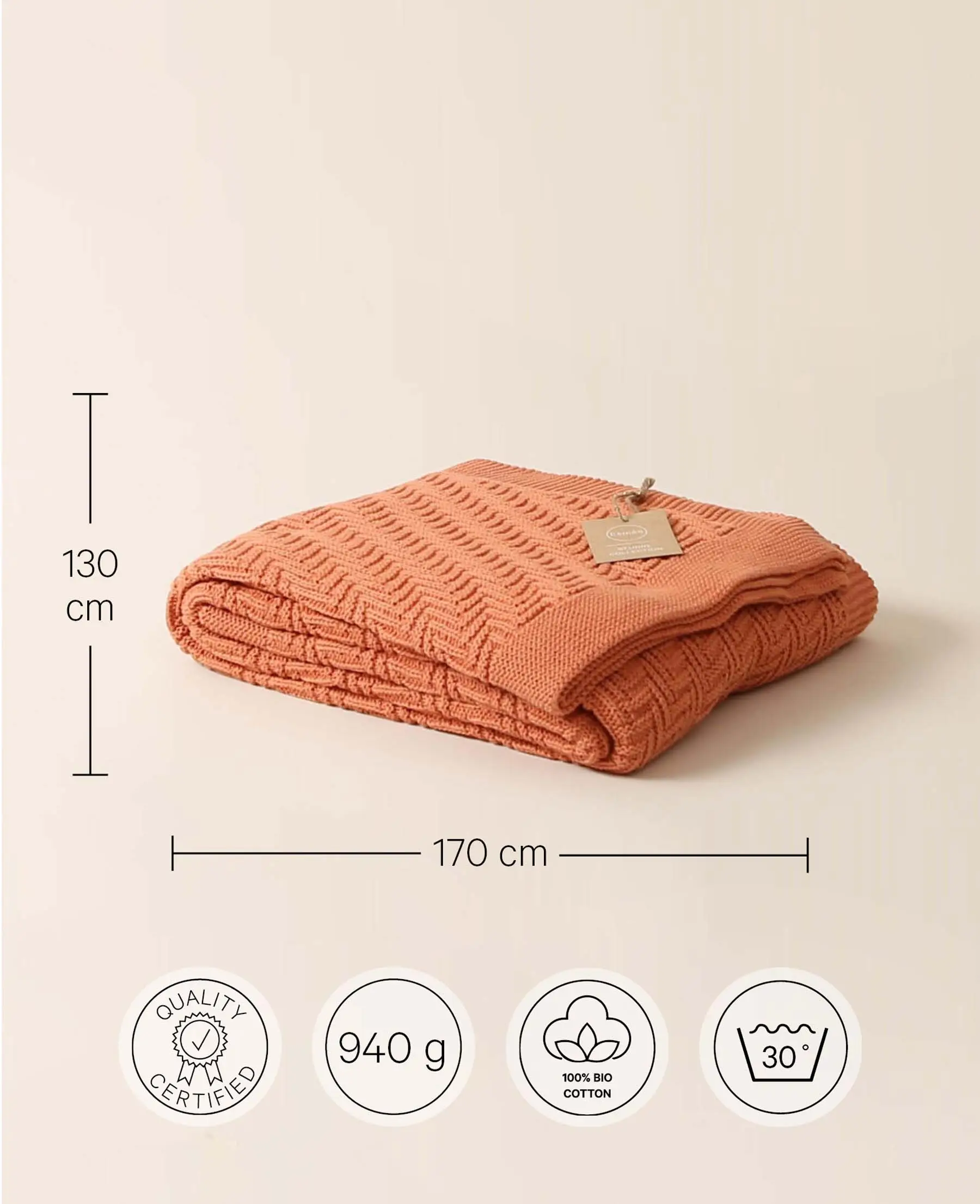 Pfirsichfarbene Baumwolldecke mit Zickzack Webmuster, 130 x 170 cm