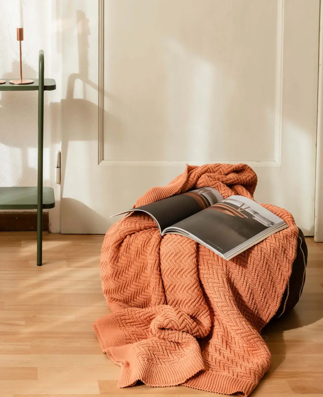Diese kuschelweiche Baumwolldecke sorgt für einen frischen Farbklecks in deinem Zuhause. Angesagtes, sanftes Orange lässt sich wunderbar mit Beige- oder Grüntönen kombinieren und sorgt für ein stilbewusstes Ambiente.
