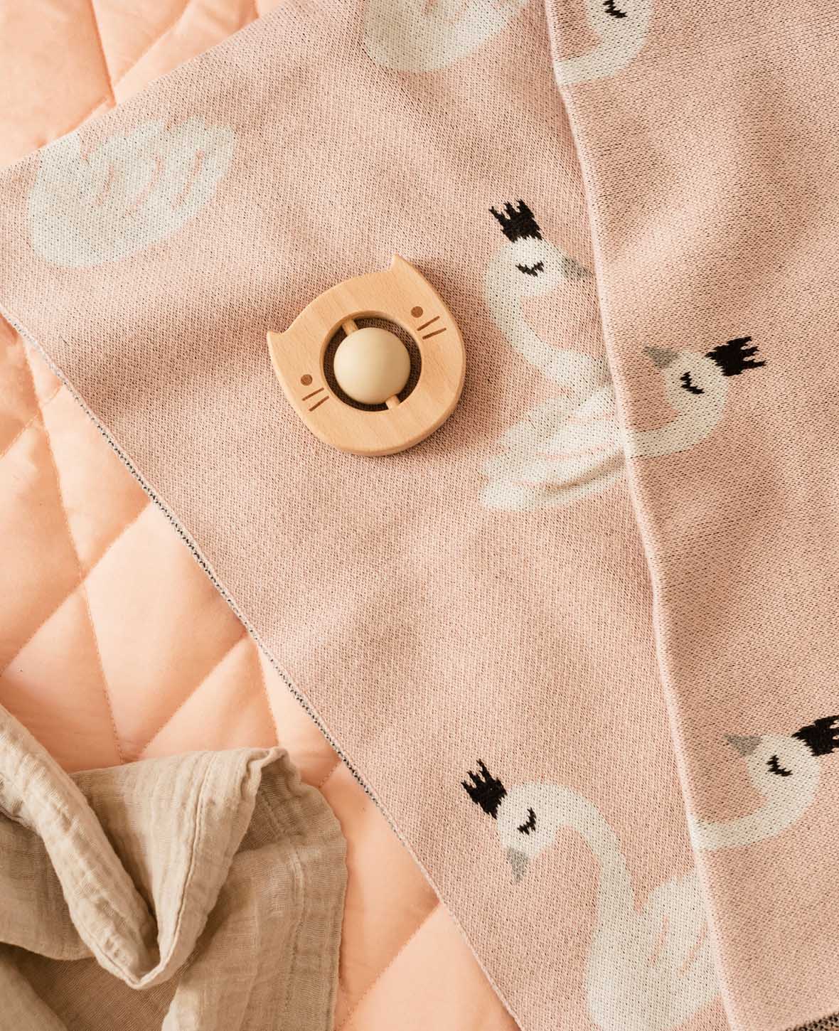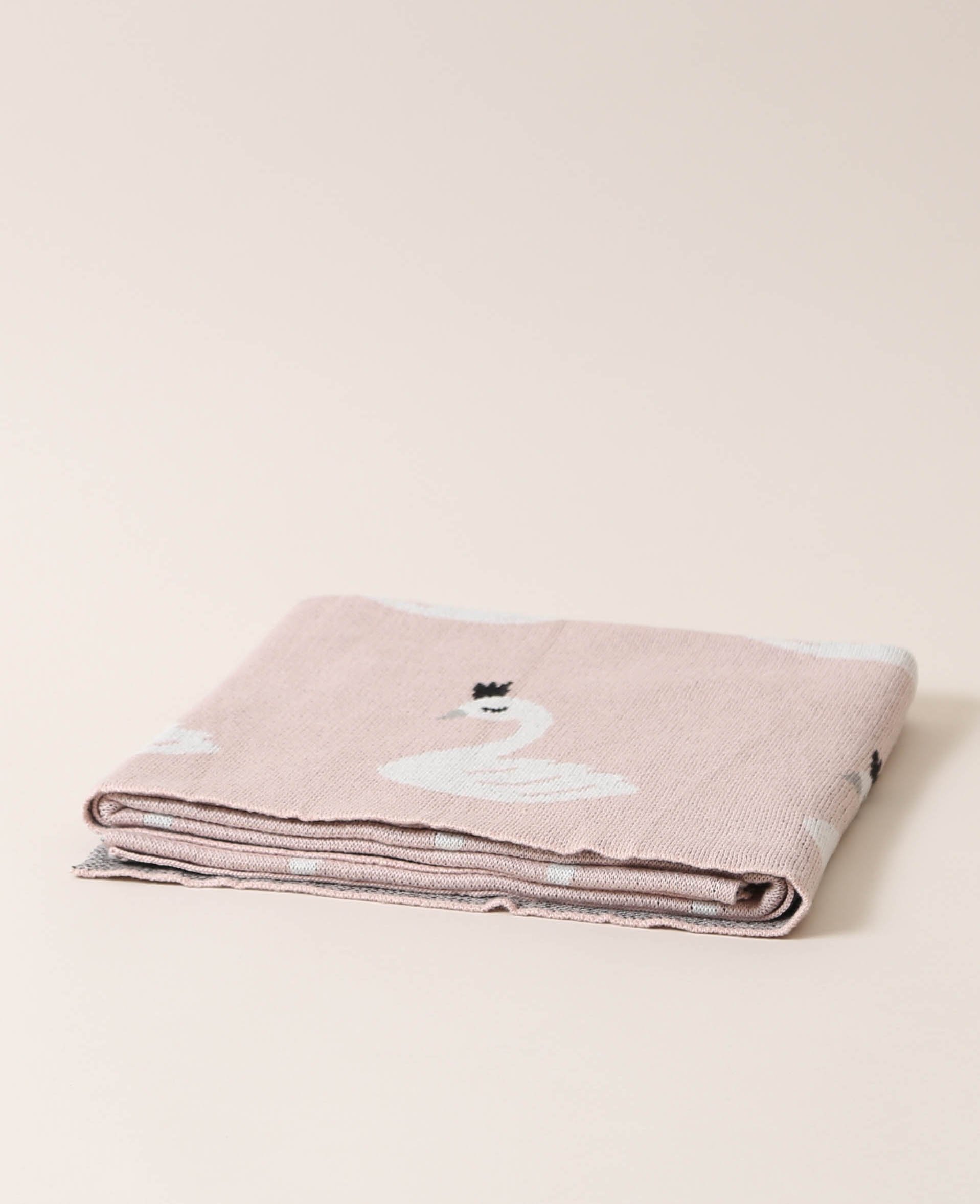 Diese Babydecke aus gestrickter Baumwolle mit Schwan Motiv gibt unseren Kleinen im Kinderwagen oder Bettchen Wärme.