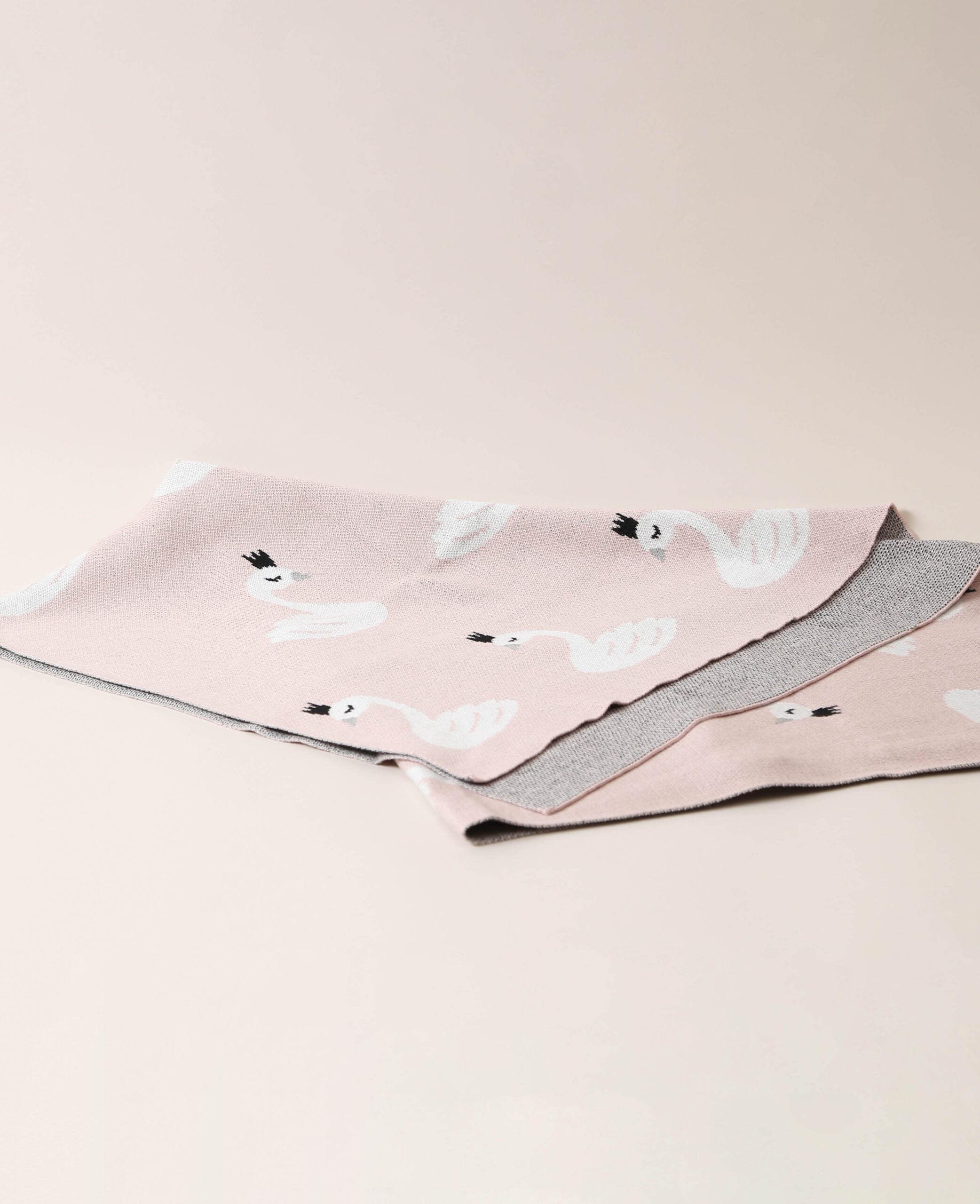 • Babydecke in Rosa und Weiss mit Schwan Motiv
