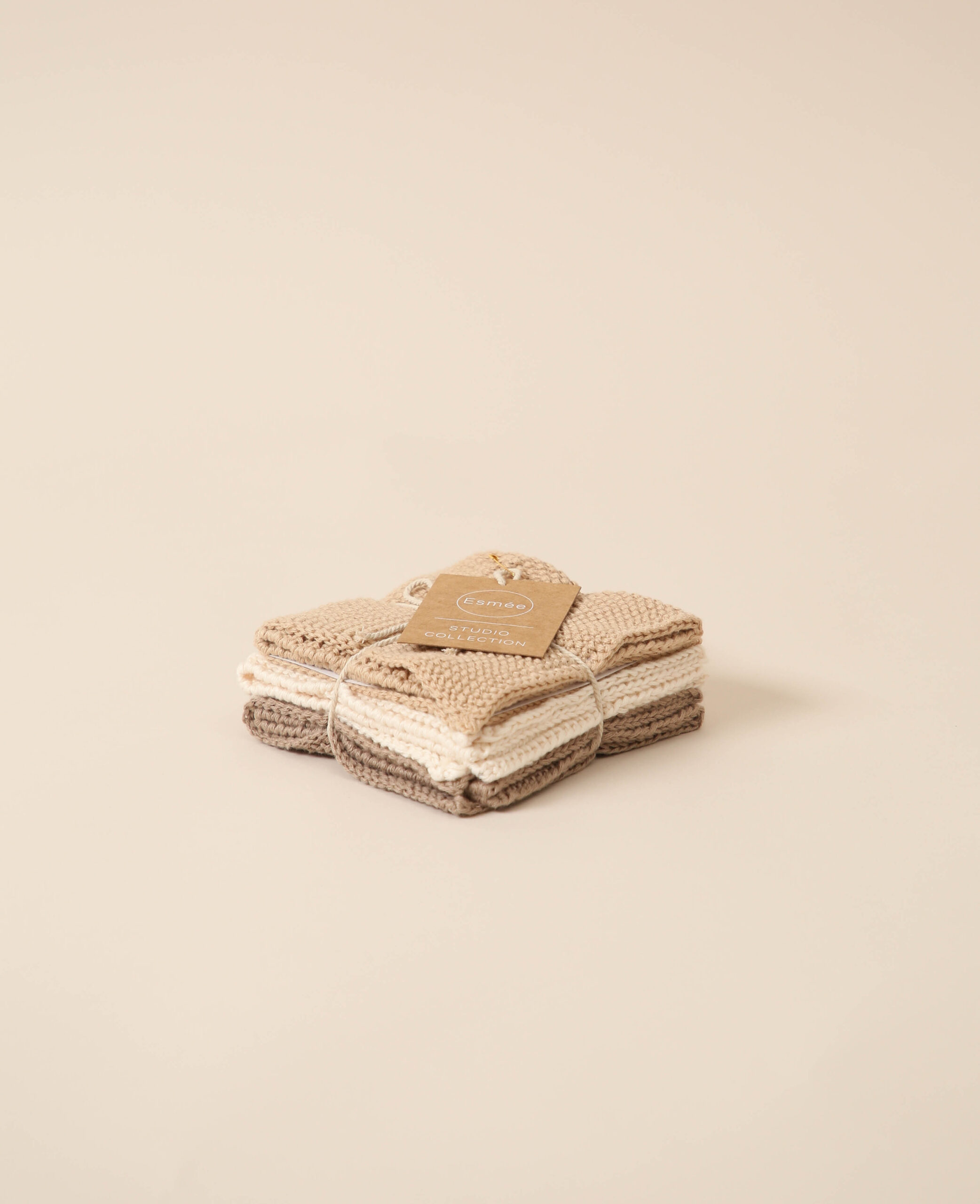 Reinigungstuchset / Stricklappen aus Baumwolle für Küche und Bad, Sandfarben, je 25 x 25 cm