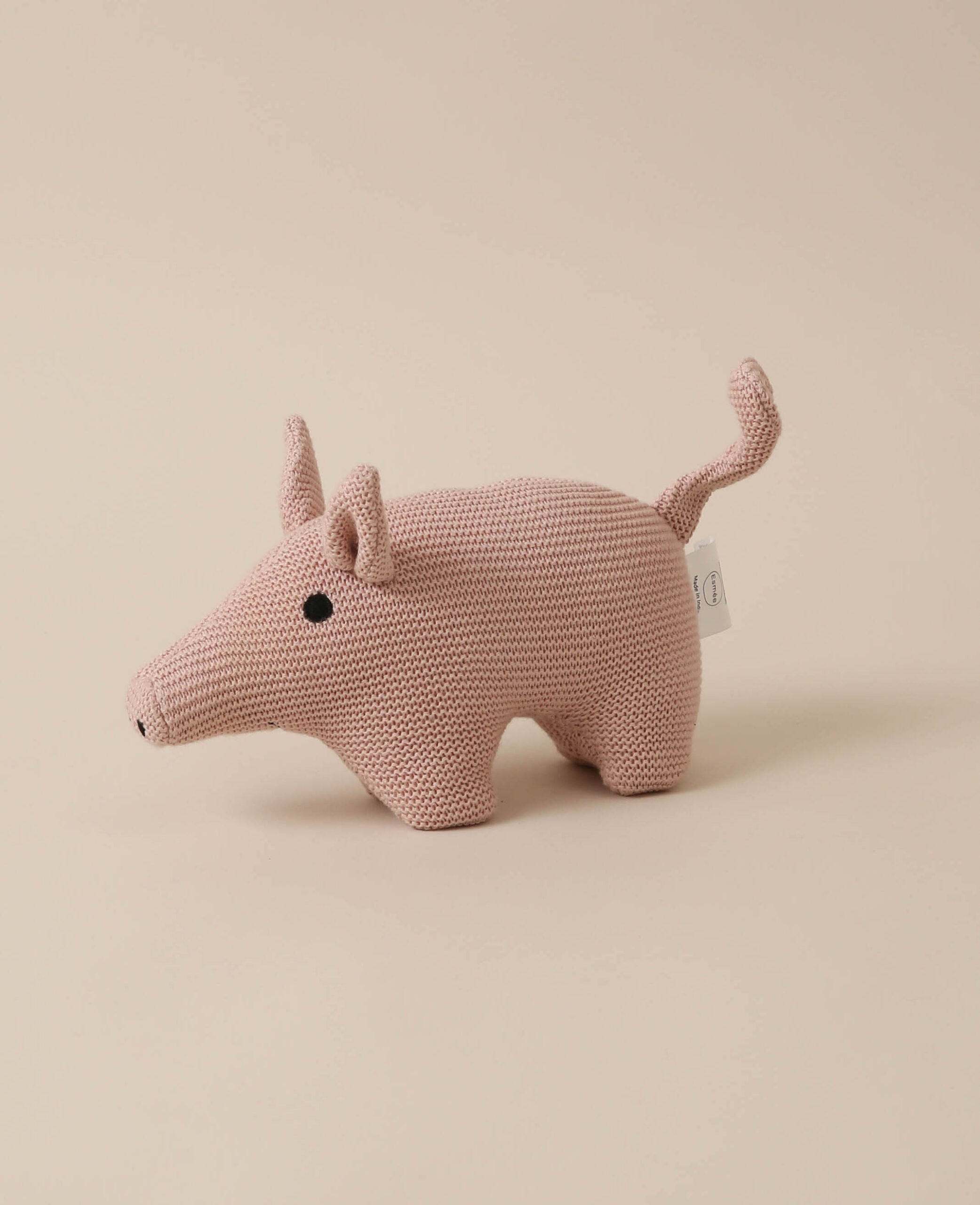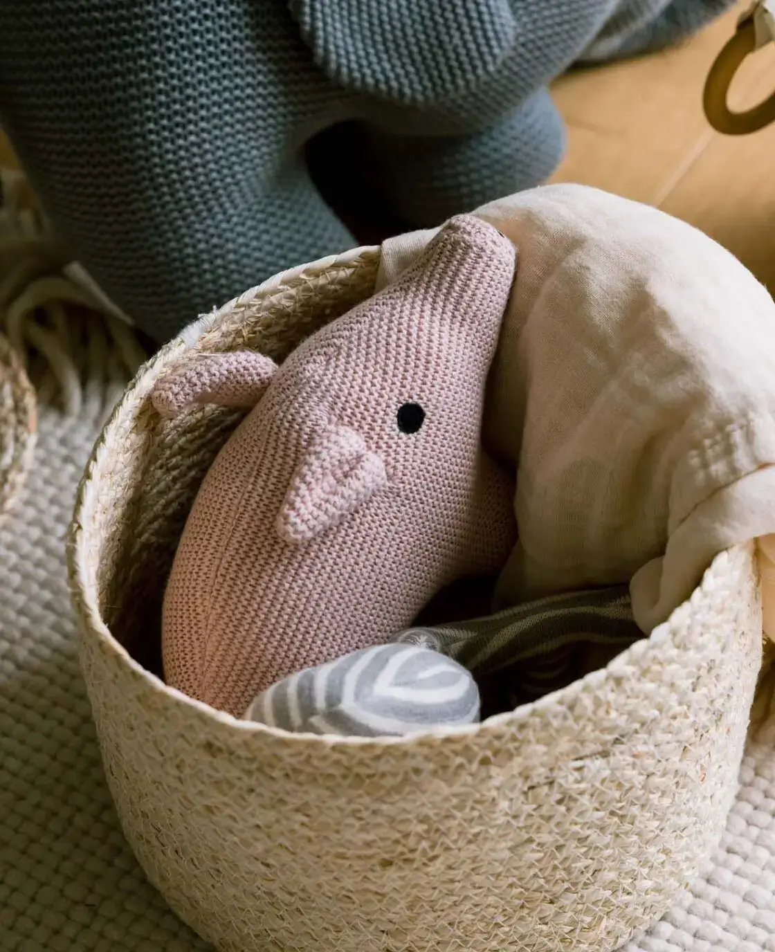 Dieses süsse Ferkel aus gestrickter Baumwolle lässt Kinderherzen höher schlagen und macht sich in jedem Kinderzimmer tierisch gut.