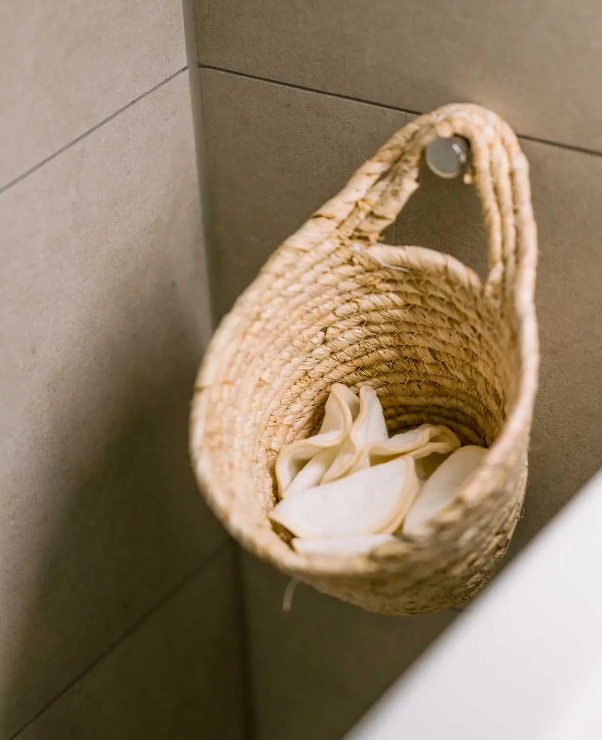Unser Korb aus langlebigen Grasfasern mit praktischer Hängelasche ist die perfekte Lösung für stilvolle Organisation. Ob in der Küche, im Bad oder für Pflanzen, dieser vielseitige Korb bietet stabilen Halt und kann sowohl gestellt als auch gehängt werden. Mit seiner natürlichen Ausstrahlung fügt er sich nahtlos in jede Umgebung ein und schafft eine harmonische Atmosphäre.