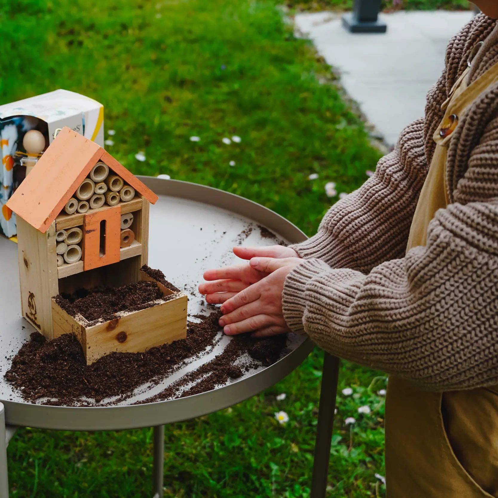 CONTIENT : Hôtel pour insectes avec terreau et graines de pavot doré.