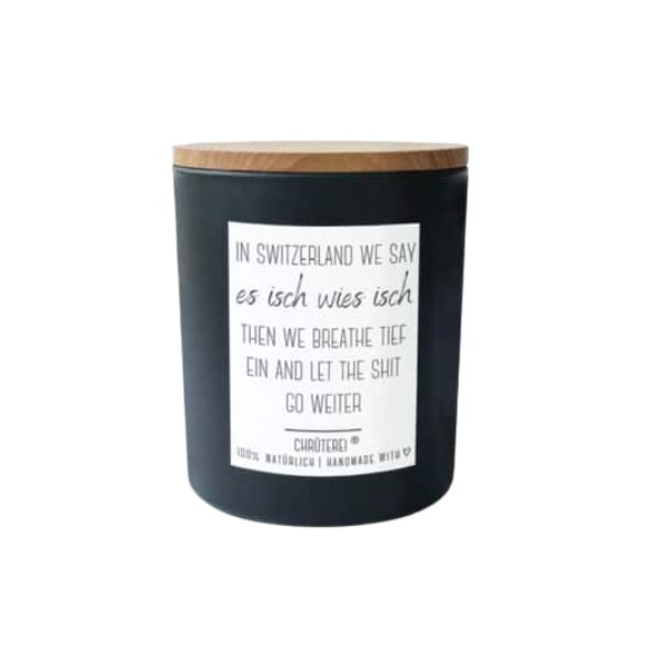 Une bougie durable et végétalienne fabriquée en Suisse. Des slogans individuels pour chaque occasion. Nous utilisons de la cire de colza pure pour les bougies. Pas de paraffine, pas de plastique, pas de soja. Sans tests sur les animaux. La mèche et le couvercle sont fabriqués dans le même village à partir de bois suisse. La mèche en bois crée une superbe ambiance de feu de camp.