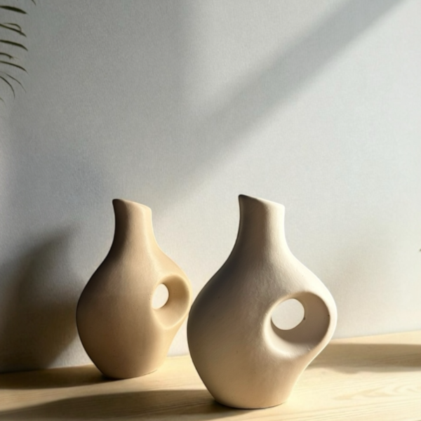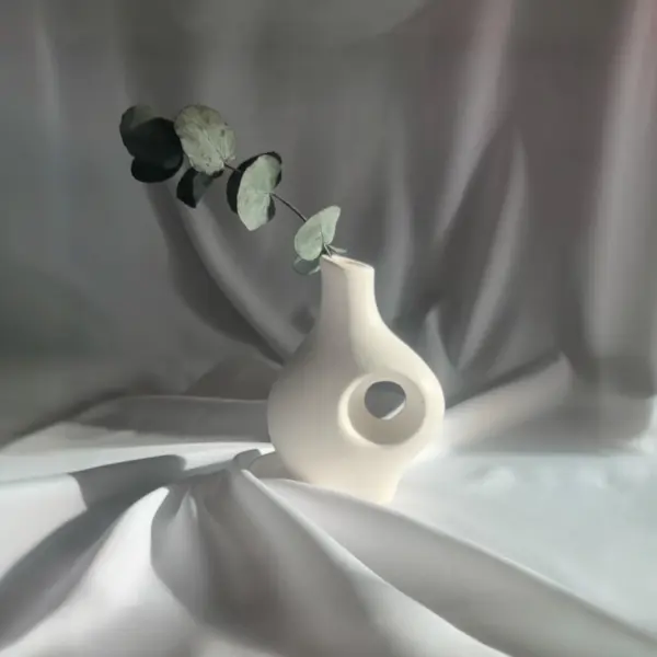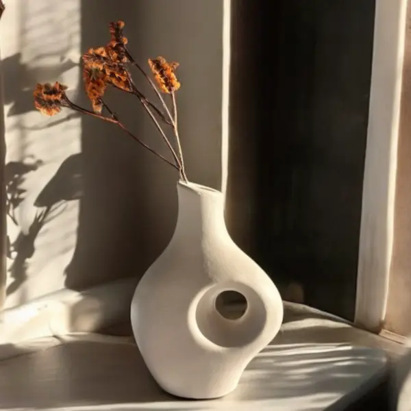 Un vase sculptural fait à la main en éco-composite minéral. Simple, intemporel et idéal pour les tiges de fleurs séchées individuelles. Avec une surface lisse et mate dans un ton crème chaud.