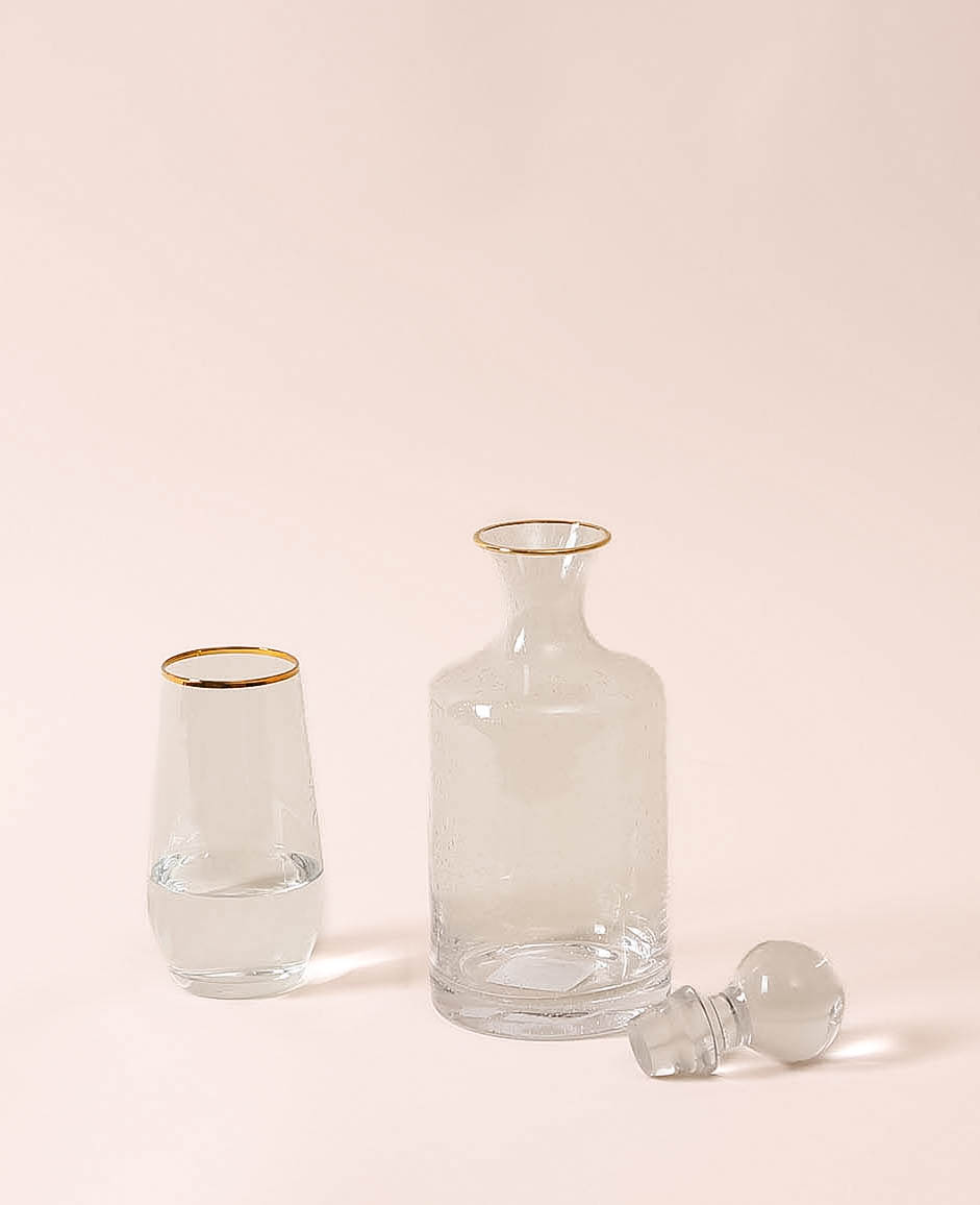 Glaskaraffe mit Goldrand, Durchmesser 5.5 cm
