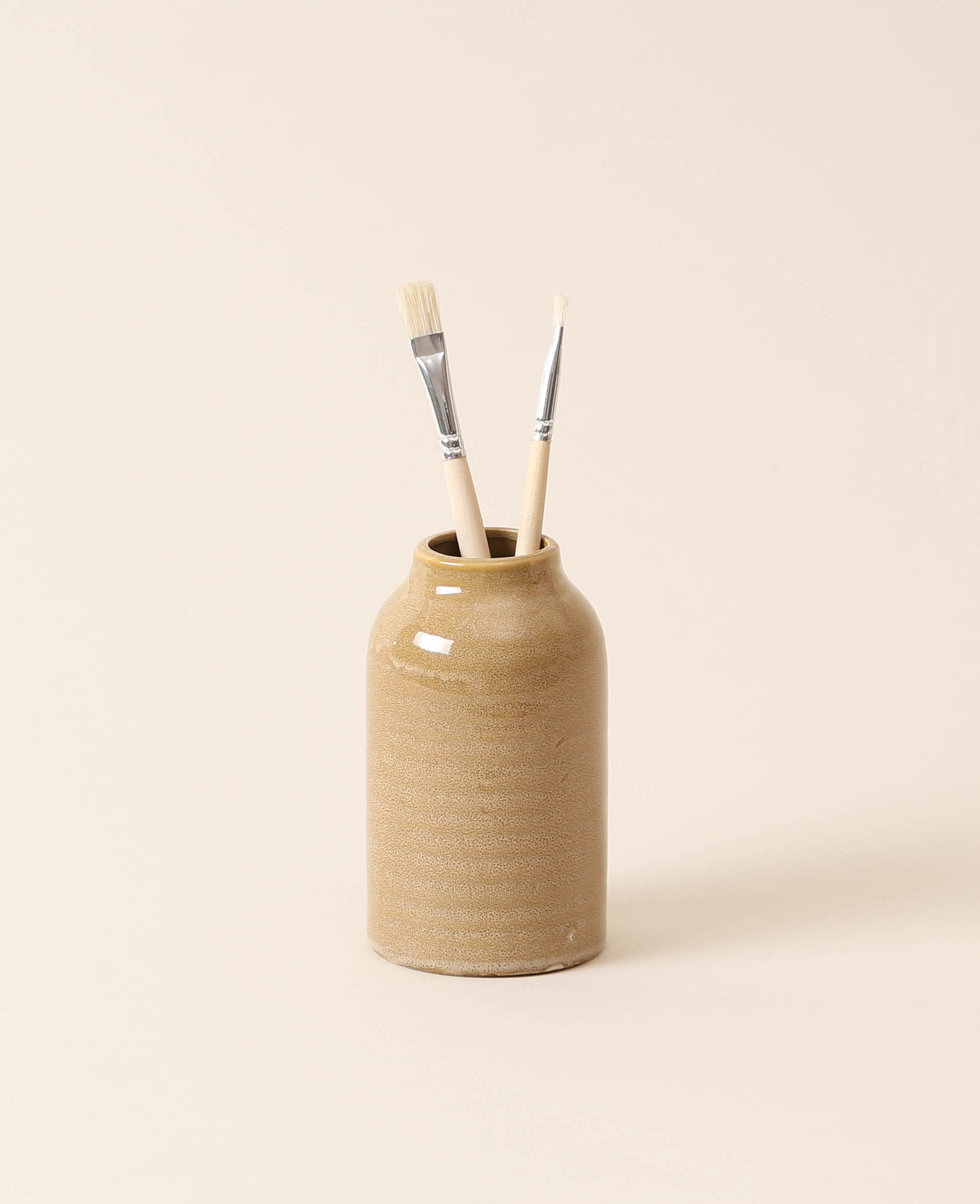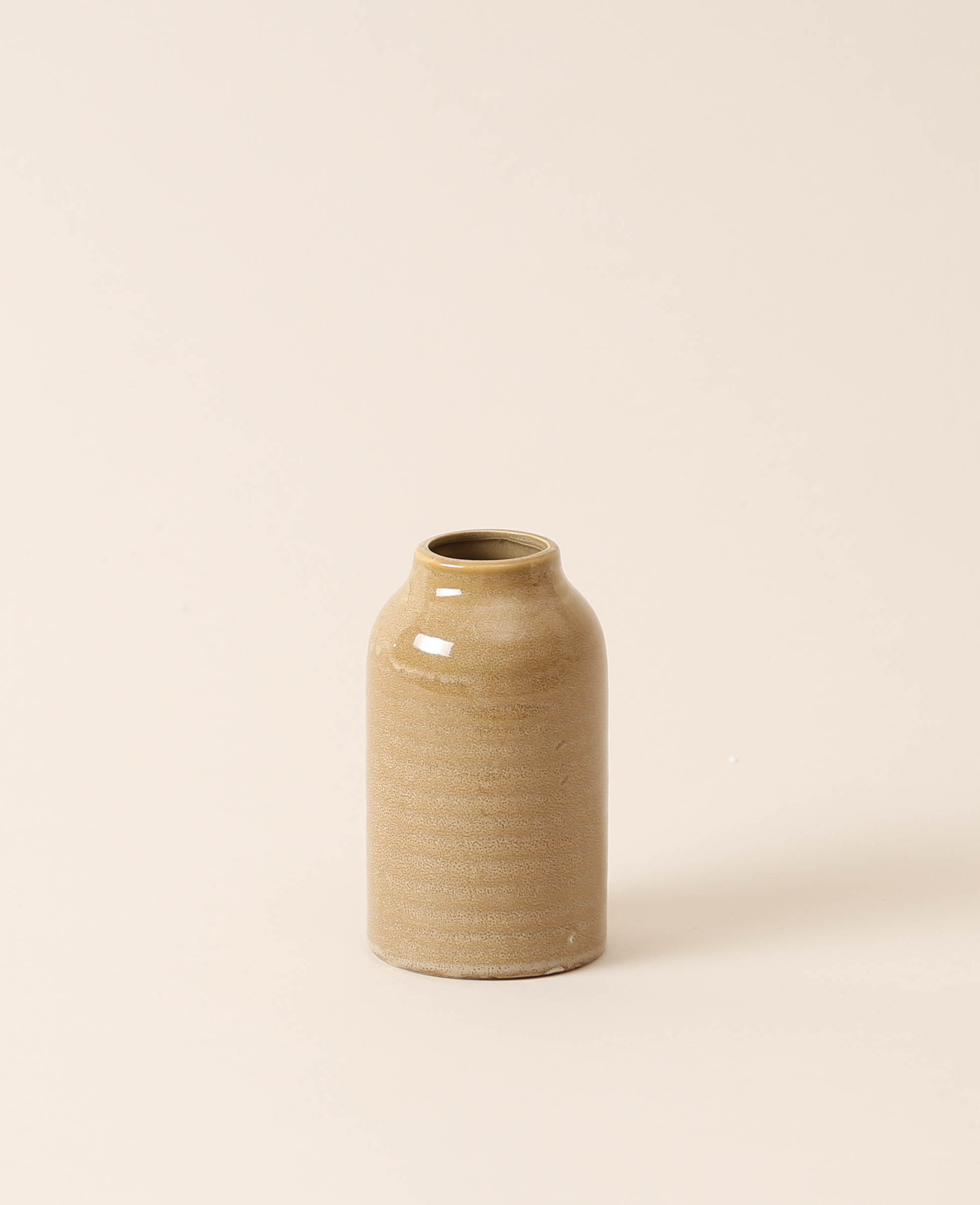 • Mini Vase mit ockerfarbener Glasur in schlichter Form aus langlebigem Steingut
