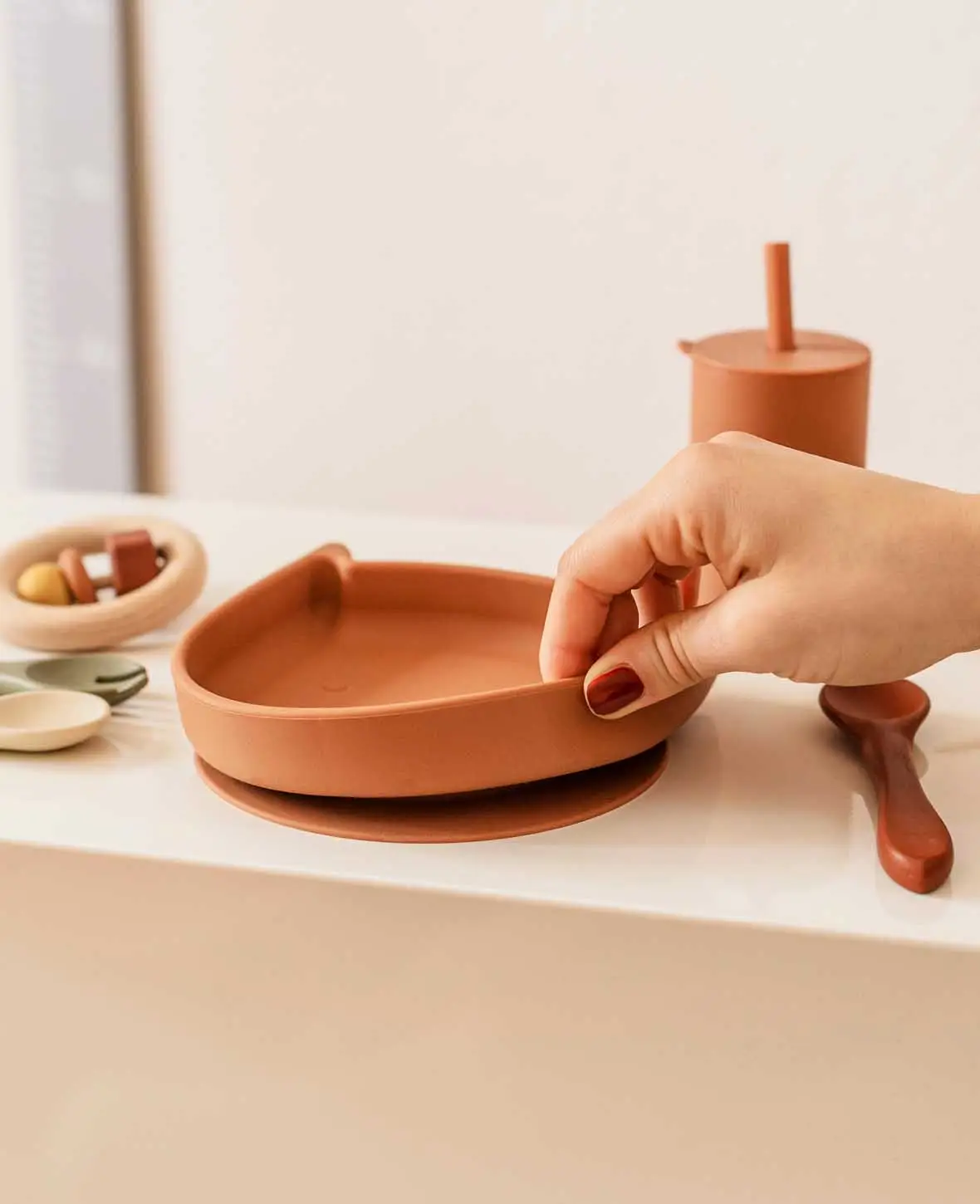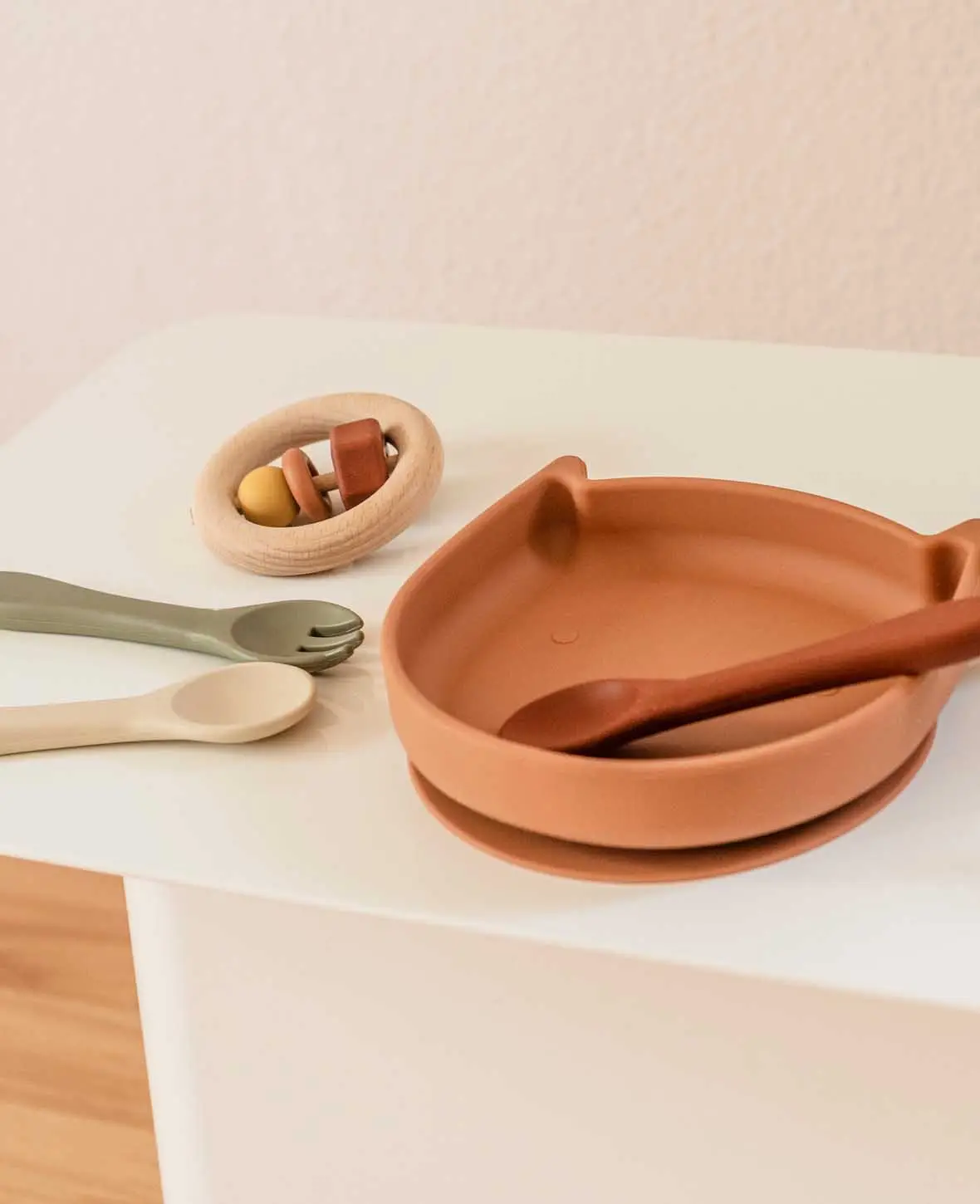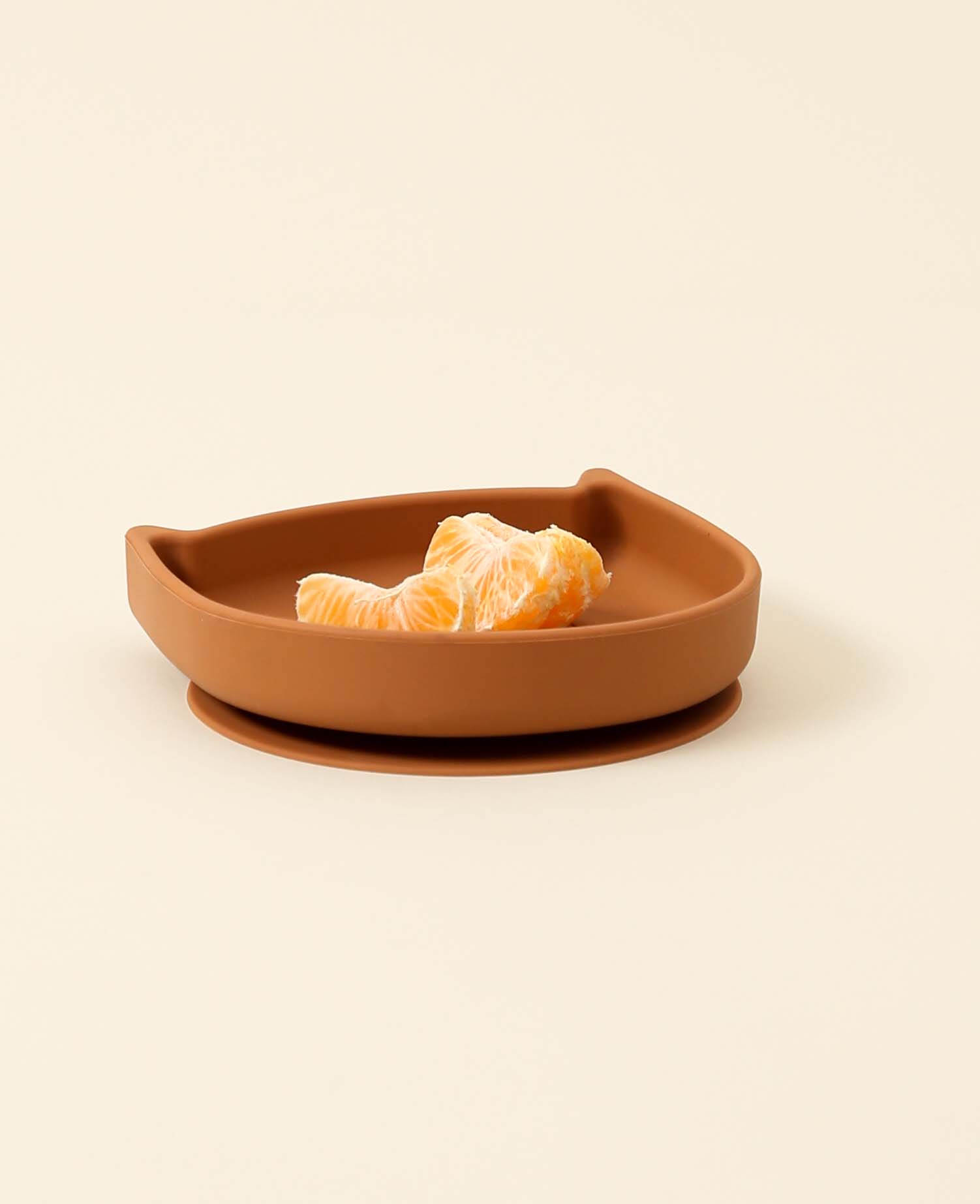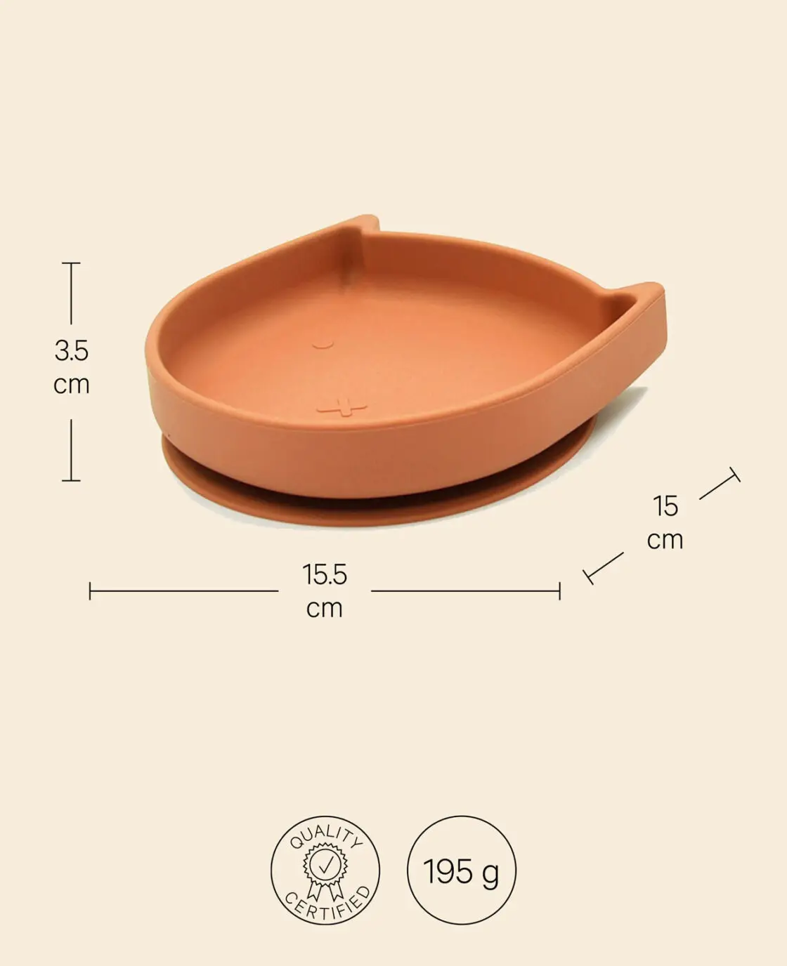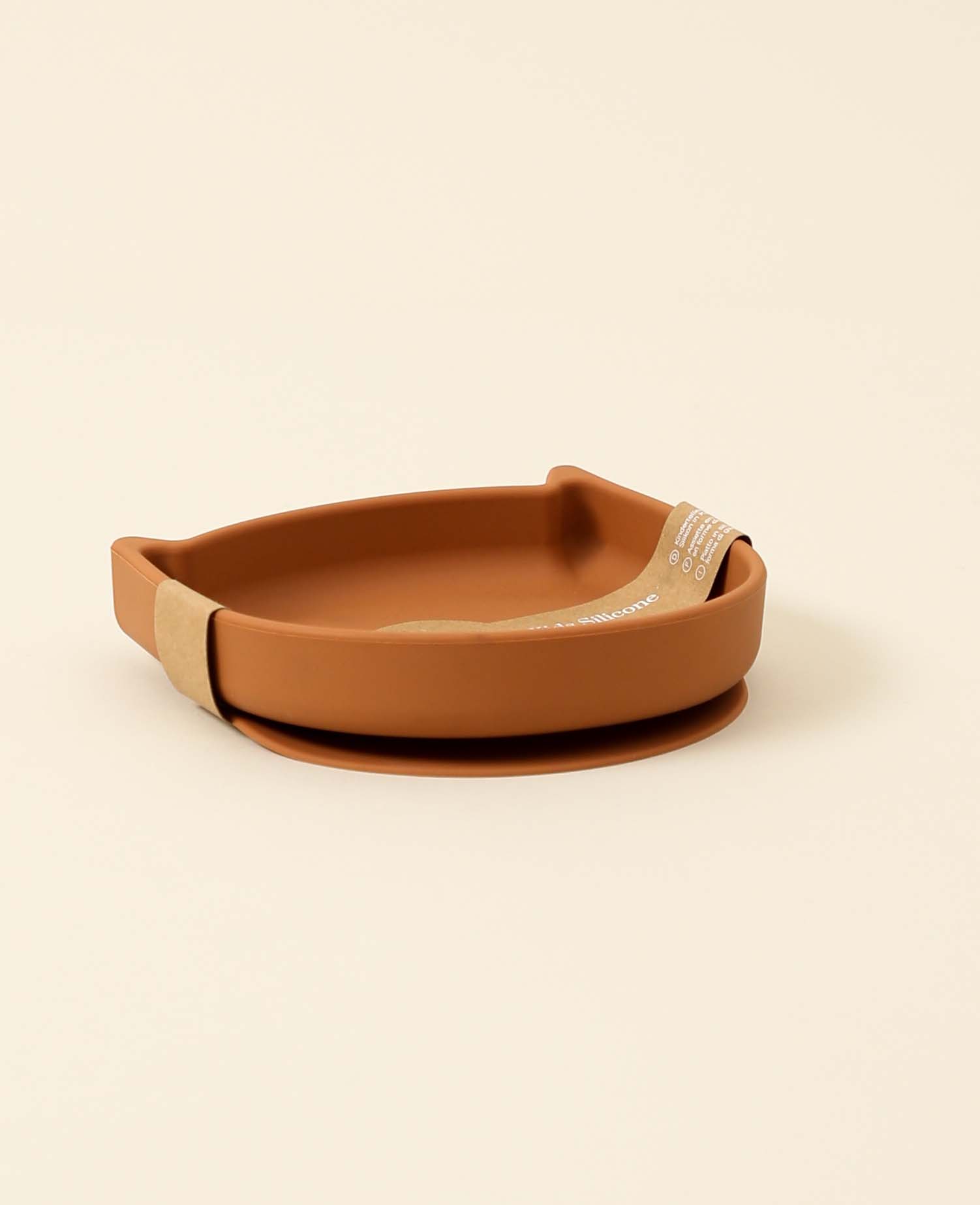 Kinder Katzen-Teller aus Silikon in rostrot mit Saugnapf, Ø 15 cm