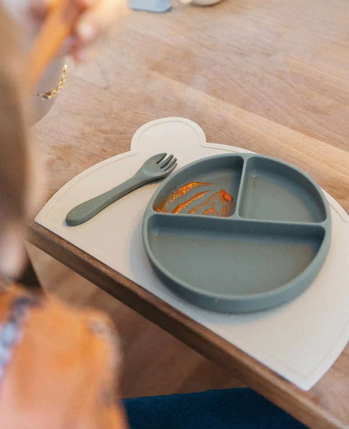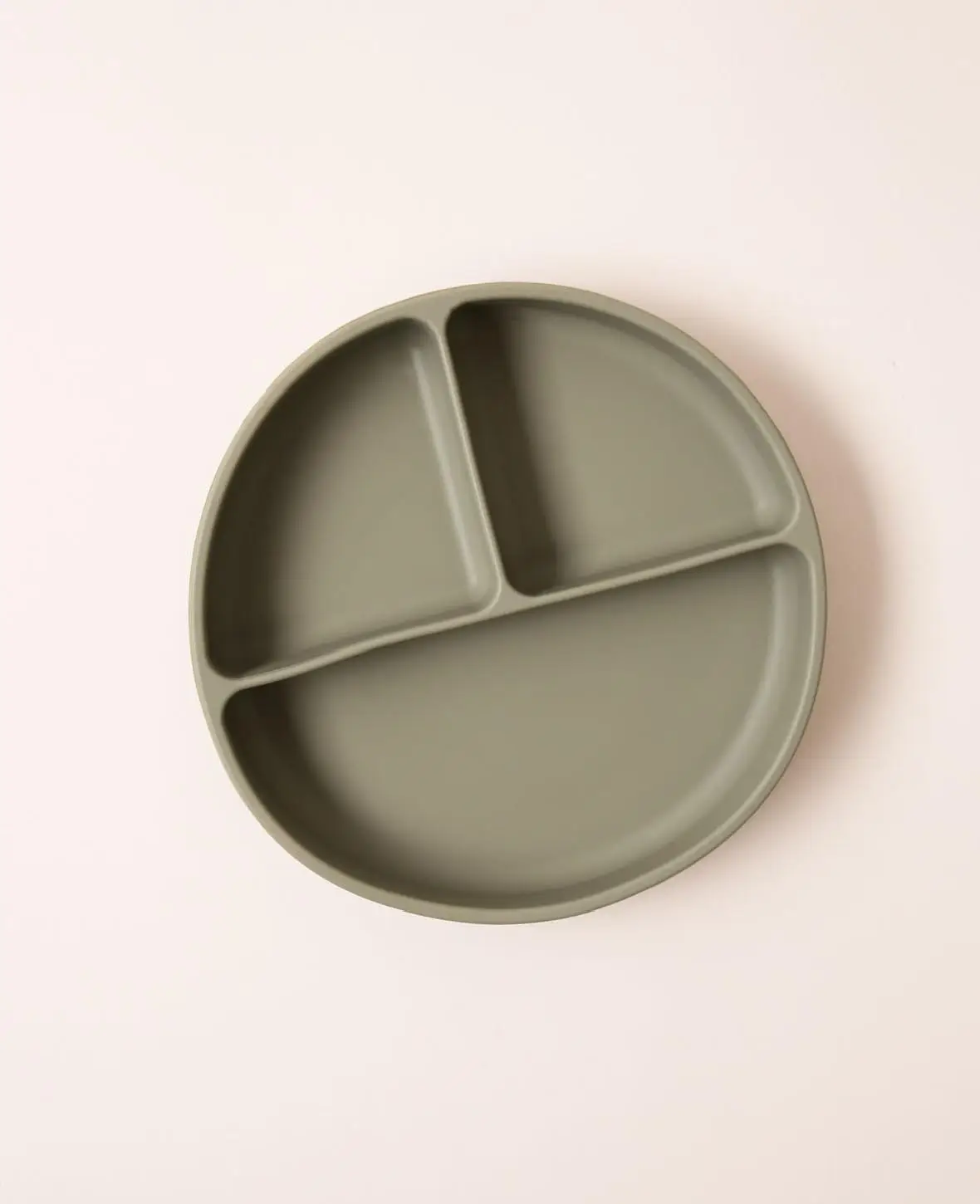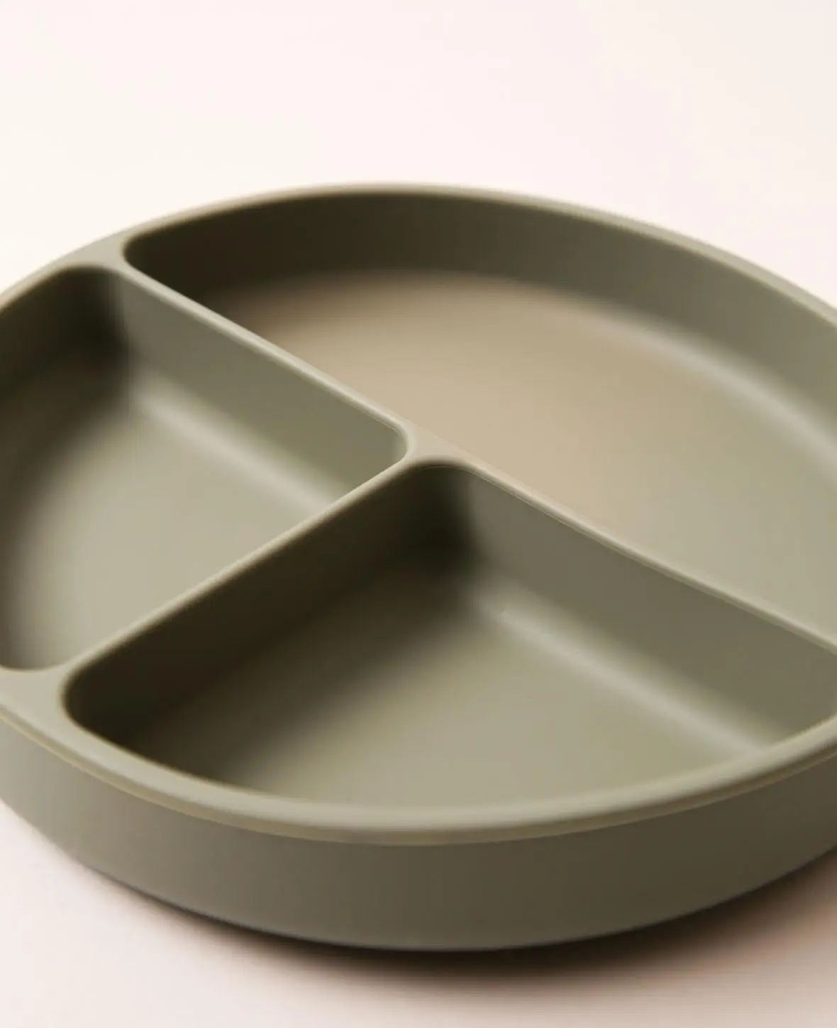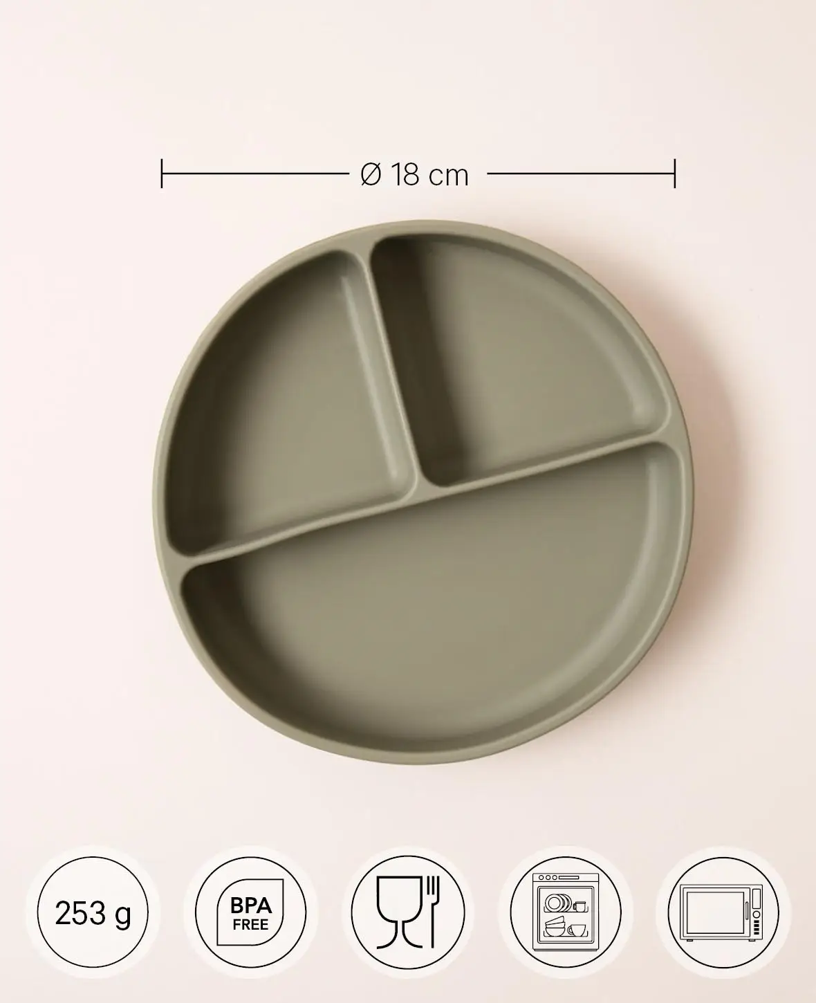Kinderteller mit Unterteilungen, mit Saugnapf, aus Silikon in Khaki, Ø 18 cm x H 3.5 cm