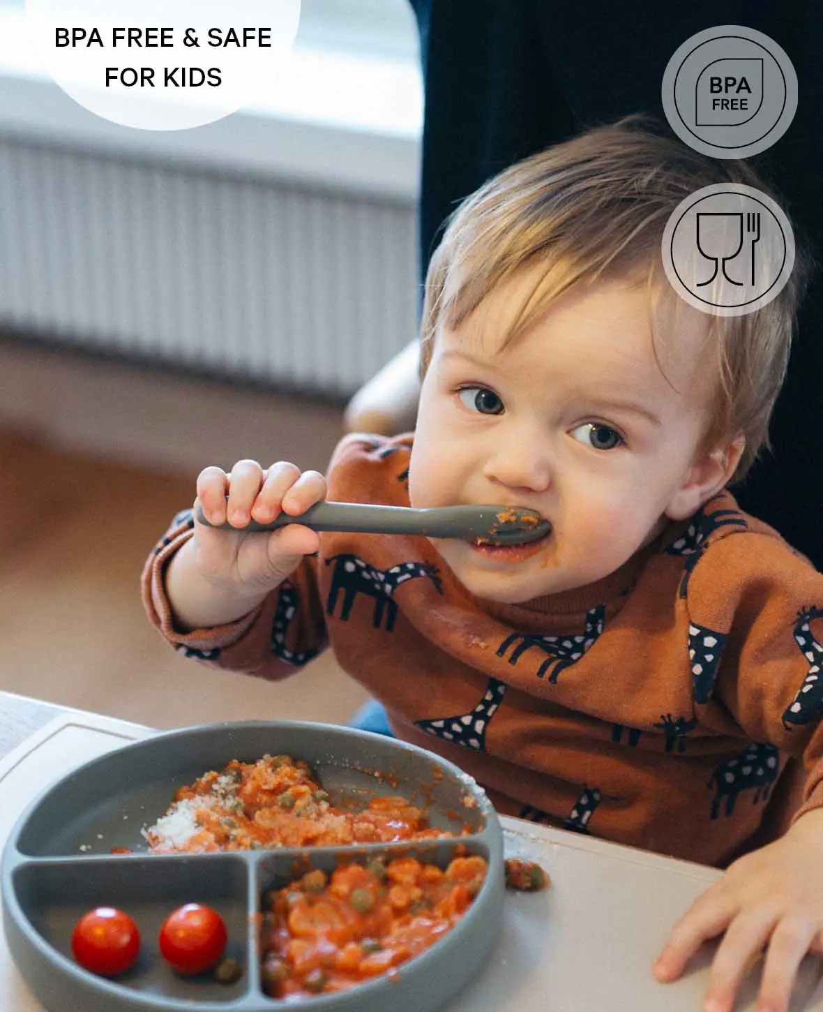 Unser Kinderteller mit Unterteilungen in Khaki ist ein praktisches Hilfsmittel, um das Essen für Kinder angenehmer zu gestalten. Mit einem Saugnapf, der auf glatten Tischflächen haftet, bleibt der Teller an Ort und Stelle. Das Silikonmaterial verhindert Kratzer und ist äusserst langlebig. Dieser Teller ist mikrowellengeeignet und spülmaschinenfest. Mit seinen zertifizierten, lebensmittelechten Materialien (BPA-frei und SGS & FDA zugelassen) ist er eine sichere Wahl.