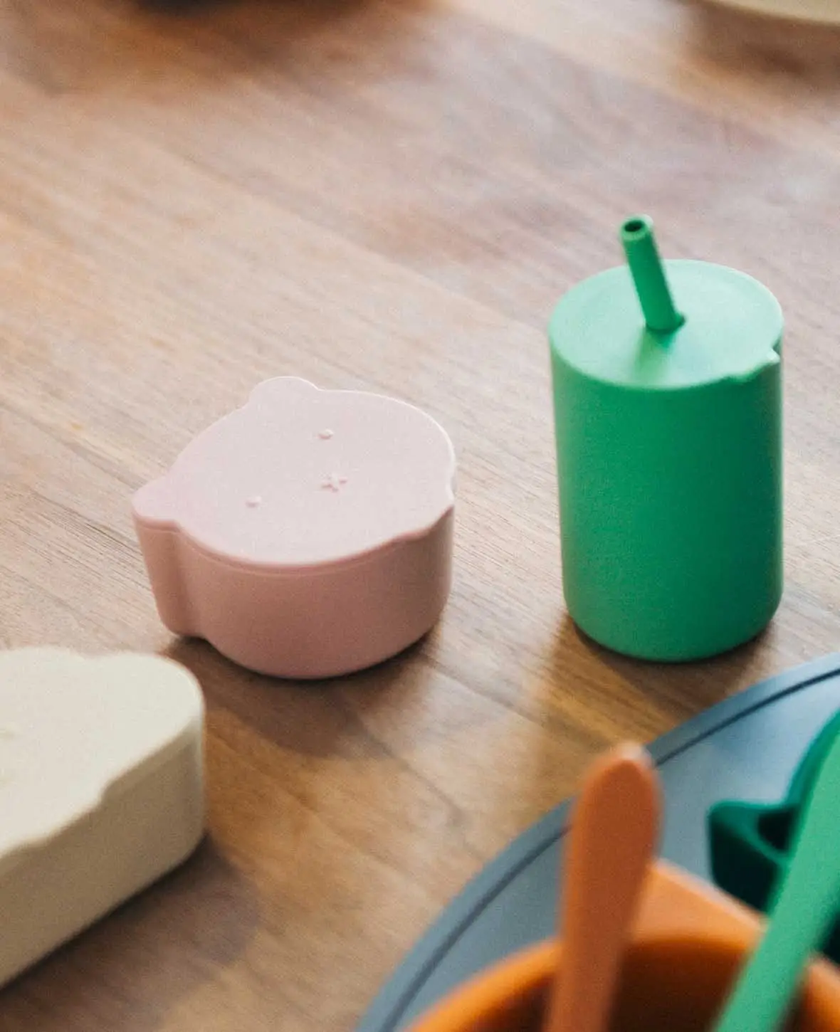 Kinder Lunchbox Set / Snackbox / Aufbewahrungsdosen in Wolken und Bärenform, aus Silikon in Rosa / Beige