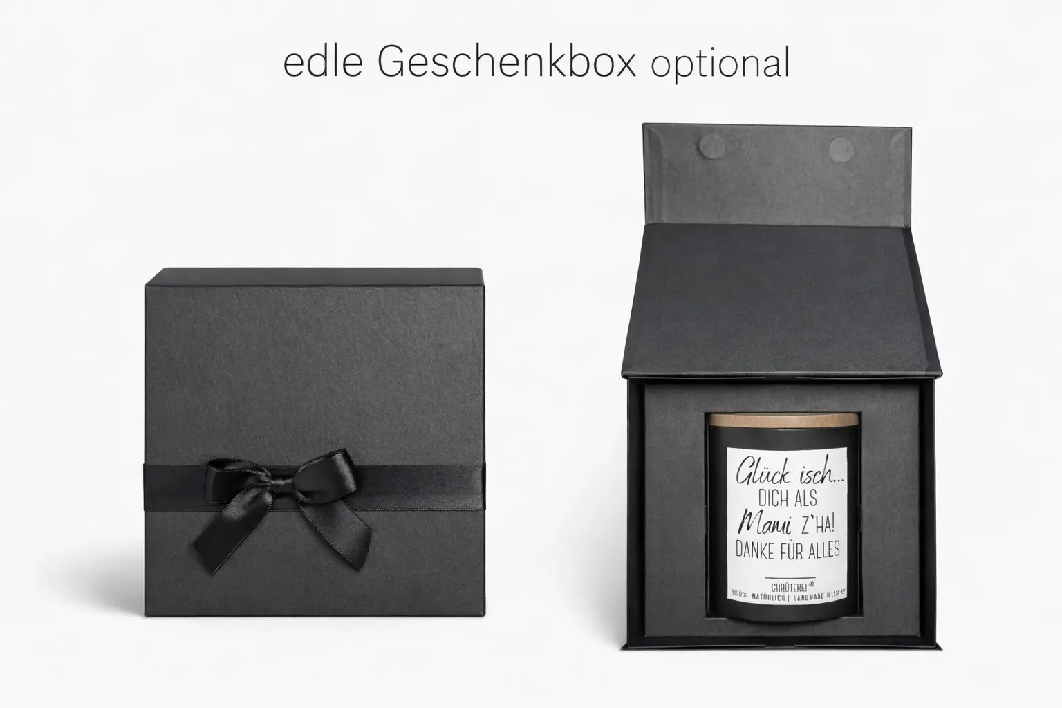 Une bougie durable et végétalienne fabriquée en Suisse. Des slogans individuels pour chaque occasion. Nous utilisons de la cire de colza pure pour les bougies. Pas de paraffine, pas de plastique, pas de soja. Sans tests sur les animaux. La mèche et le couvercle sont fabriqués dans le même village à partir de bois suisse. La mèche en bois crée une superbe ambiance de feu de camp.