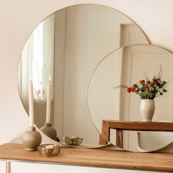Miroir mural rond simple avec cadre doré, Ø 76 cm