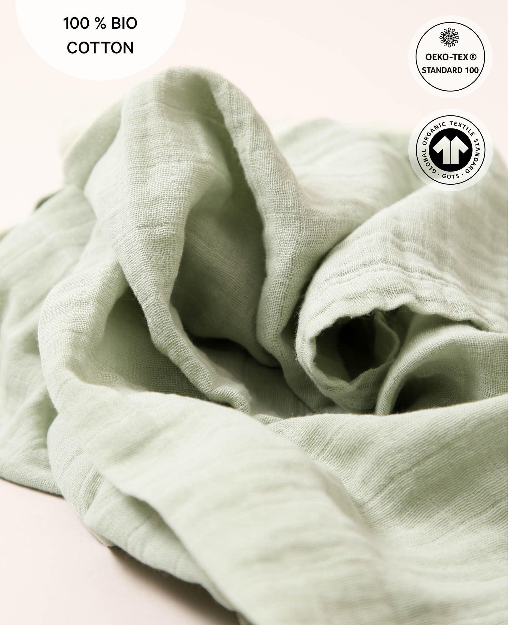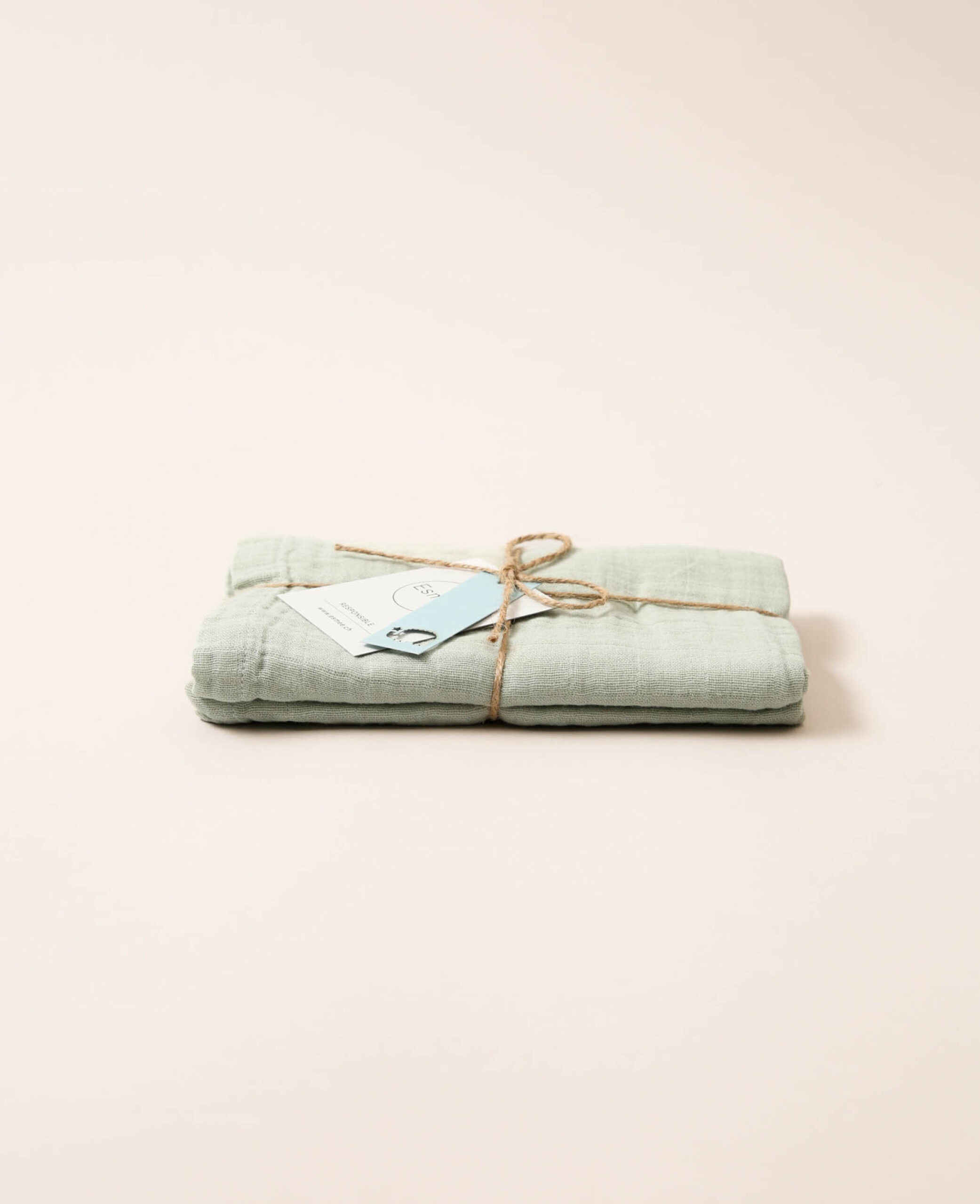 • Mulltuch aus Baumwolle-Musselin in Salbeigrün, 75 x 75 cm