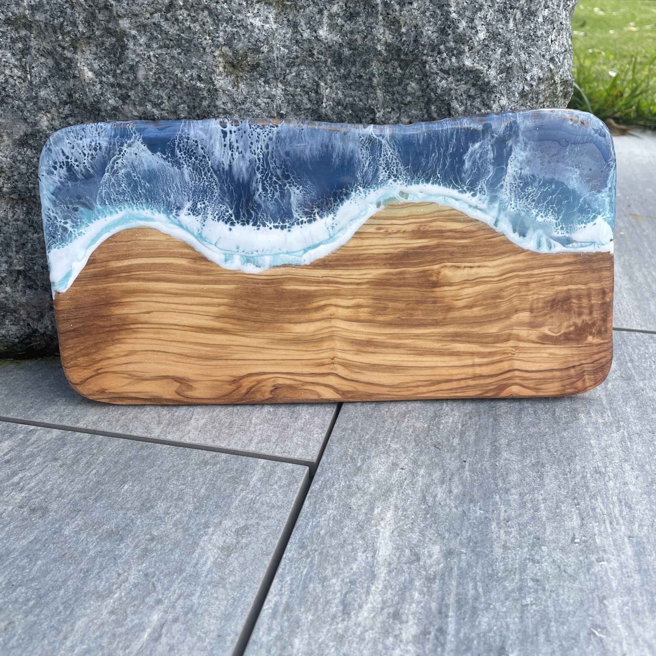 Apero- und Dekobrett aus hochwertigem Olivenholz. Jedes Stück ist ein handgemachtes Unikat, inspiriert von den Wellen des Meeres. Die Farben und Muster können variieren und machen jedes Brett zu etwas ganz Besonderem.