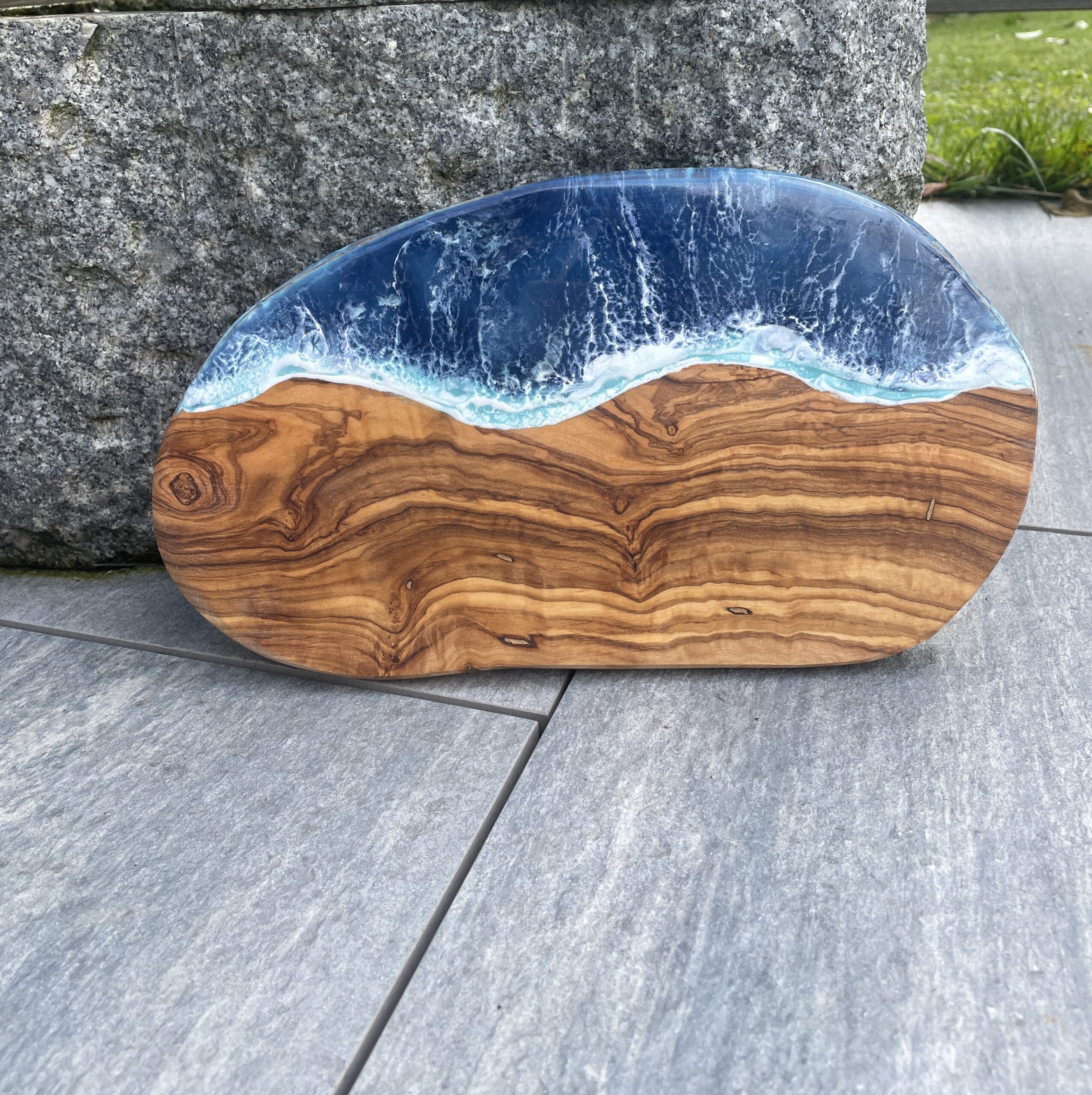 Apero- und Dekobrett aus hochwertigem Olivenholz. Jedes Stück ist ein handgemachtes Unikat, inspiriert von den Wellen des Meeres. Die Farben und Muster können variieren und machen jedes Brett zu etwas ganz Besonderem.