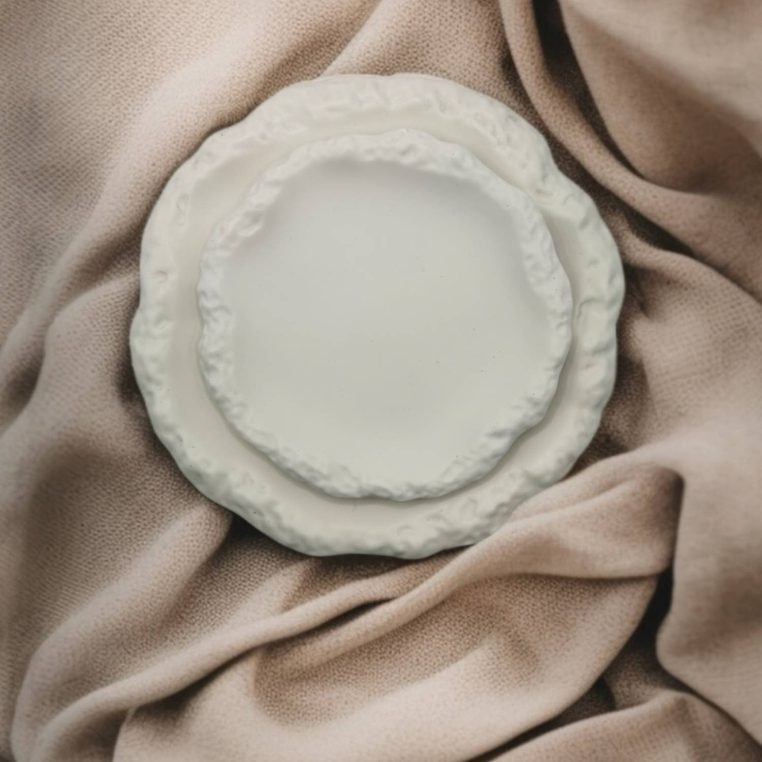 Das Petra Duo besteht aus zwei weich geschwungenen Tellern, deren Form an von Wasser gezeichnete Wellen erinnert. Die sanften Crème-Töne, die matte Oberfläche und die organischen Konturen verleihen dem Set eine zeitlose Ästhetik und machen es zu einem vielseitigen Akzentstück – ob als Centerpiece mit Kerzen, als Servierteller für Früchte oder Pralinen, oder als reine Deko-Objekte.