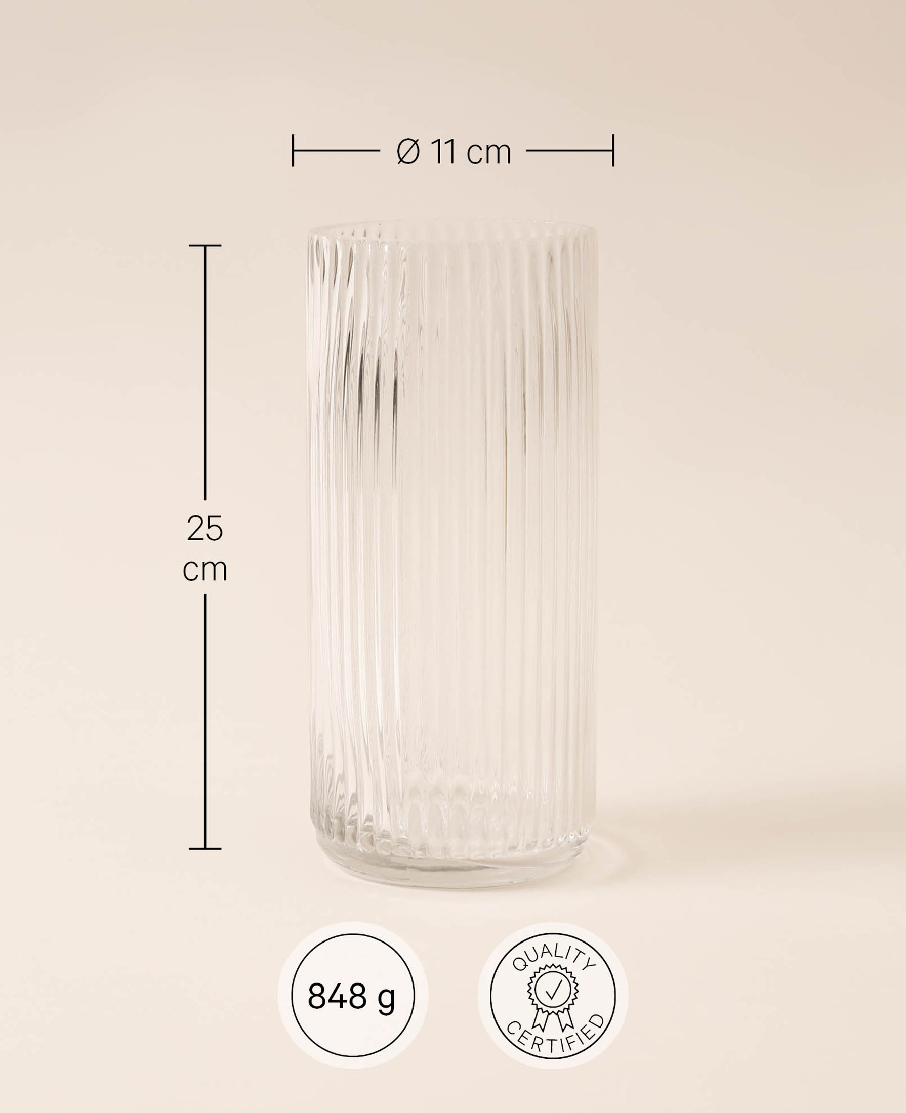 Hohe Glasvase mit Rillen, Ø 25 x H 11 cm