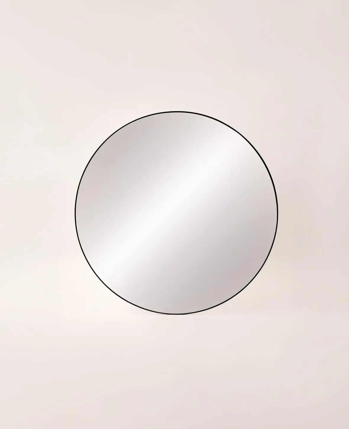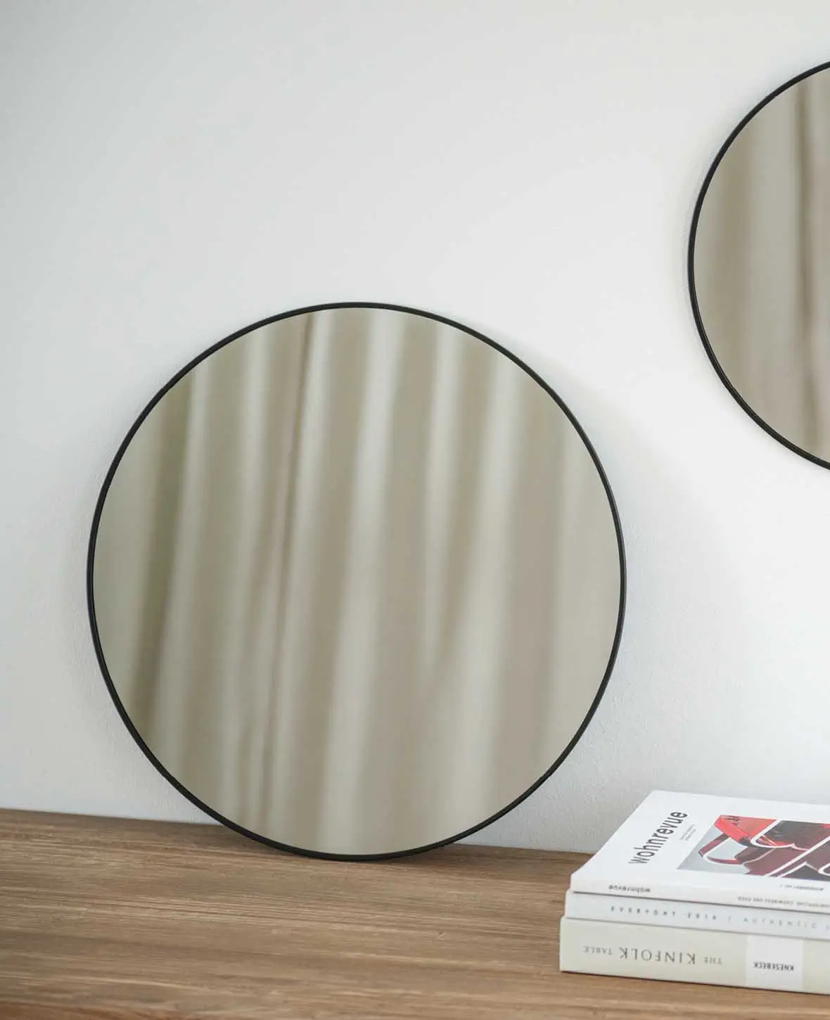 Schlichter runder Wandspiegel mit schwarzem Rahmen, Ø 40 cm