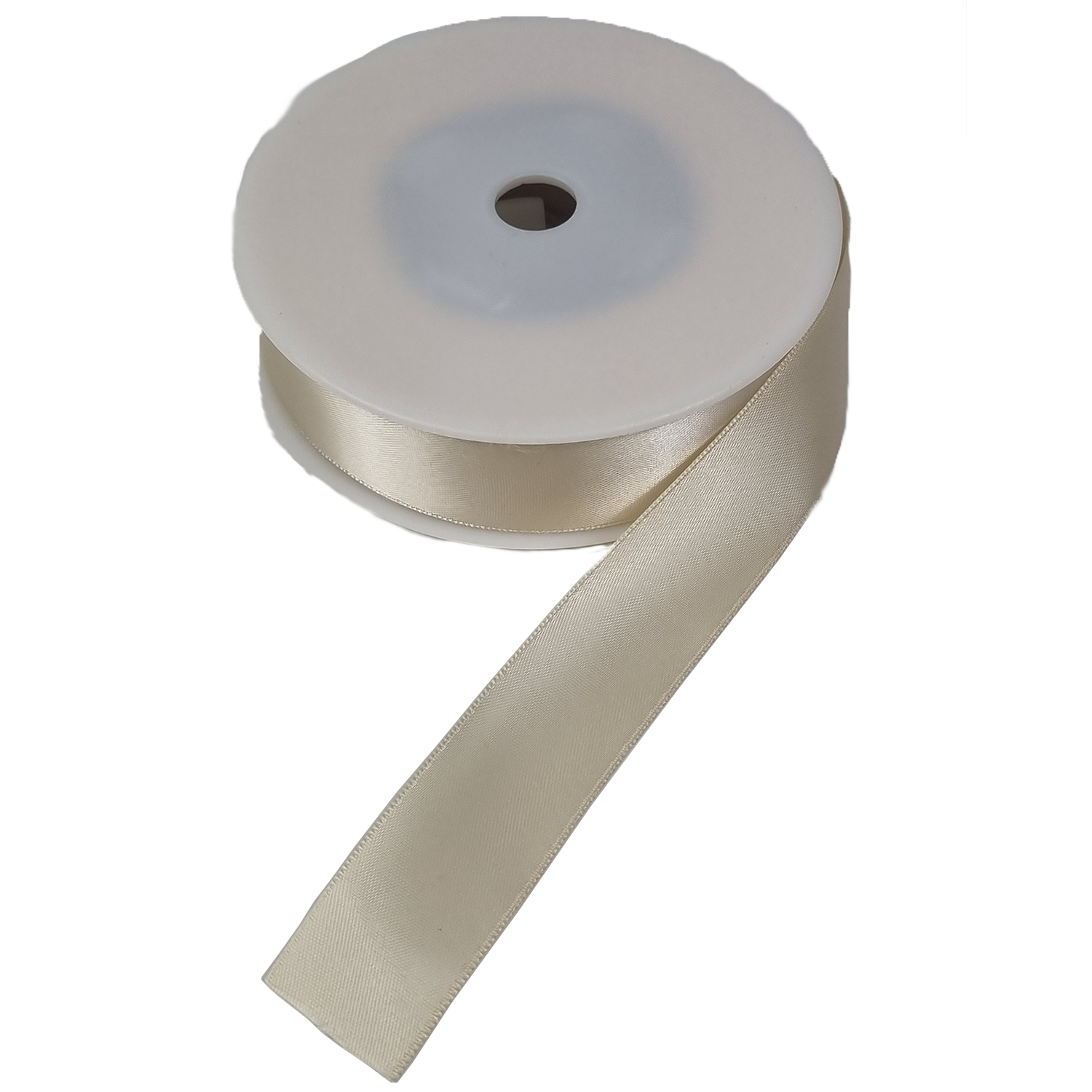 Elegantes, doppelseitiges Satinband in edlem Ivory. Mit einer Breite von 25 mm und einer Länge von 25 Metern eignet es sich ideal für Geschenkverpackungen, Dekorationen, Bastelarbeiten oder festliche Anlässe wie Hochzeiten und Weihnachten. Die glatte, glänzende Oberfläche verleiht jedem Projekt eine hochwertige Note.