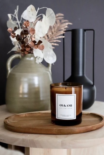 La bougie est coulée à la main, elle est composée de 100 % de cire de soja naturelle et brûle proprement et uniformément.