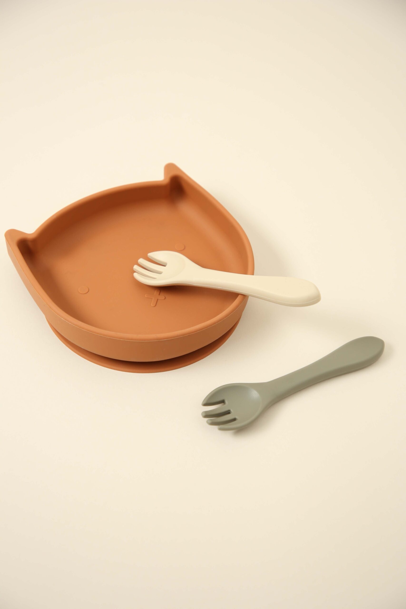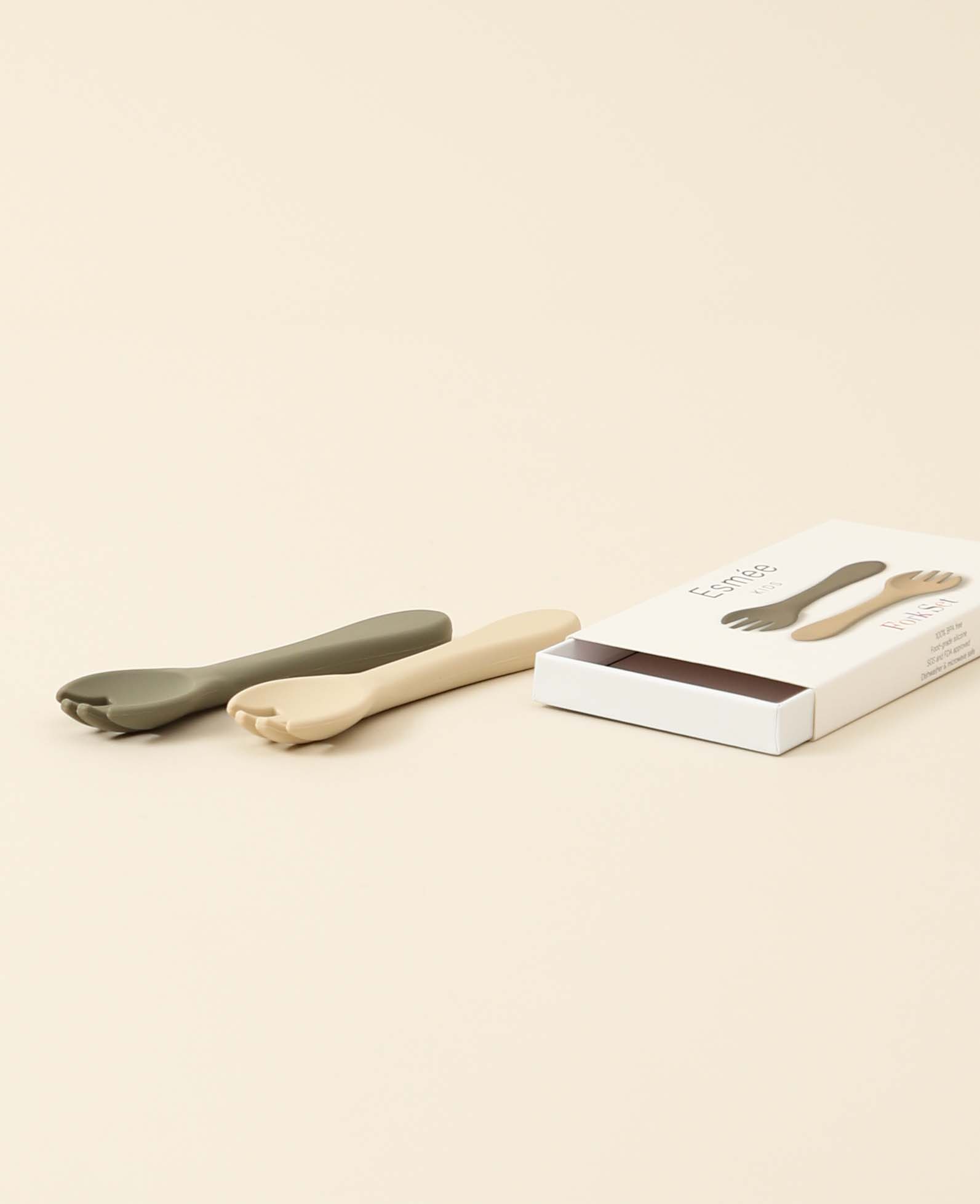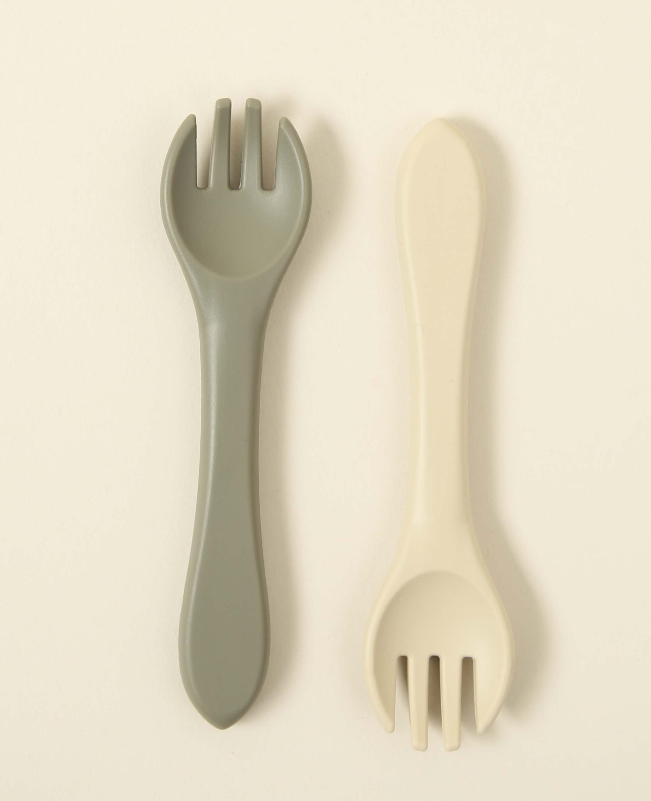 Zweierset Gabeln für Kinder und Baby aus Silikon, grau / beige, 14 cm x 1 cm