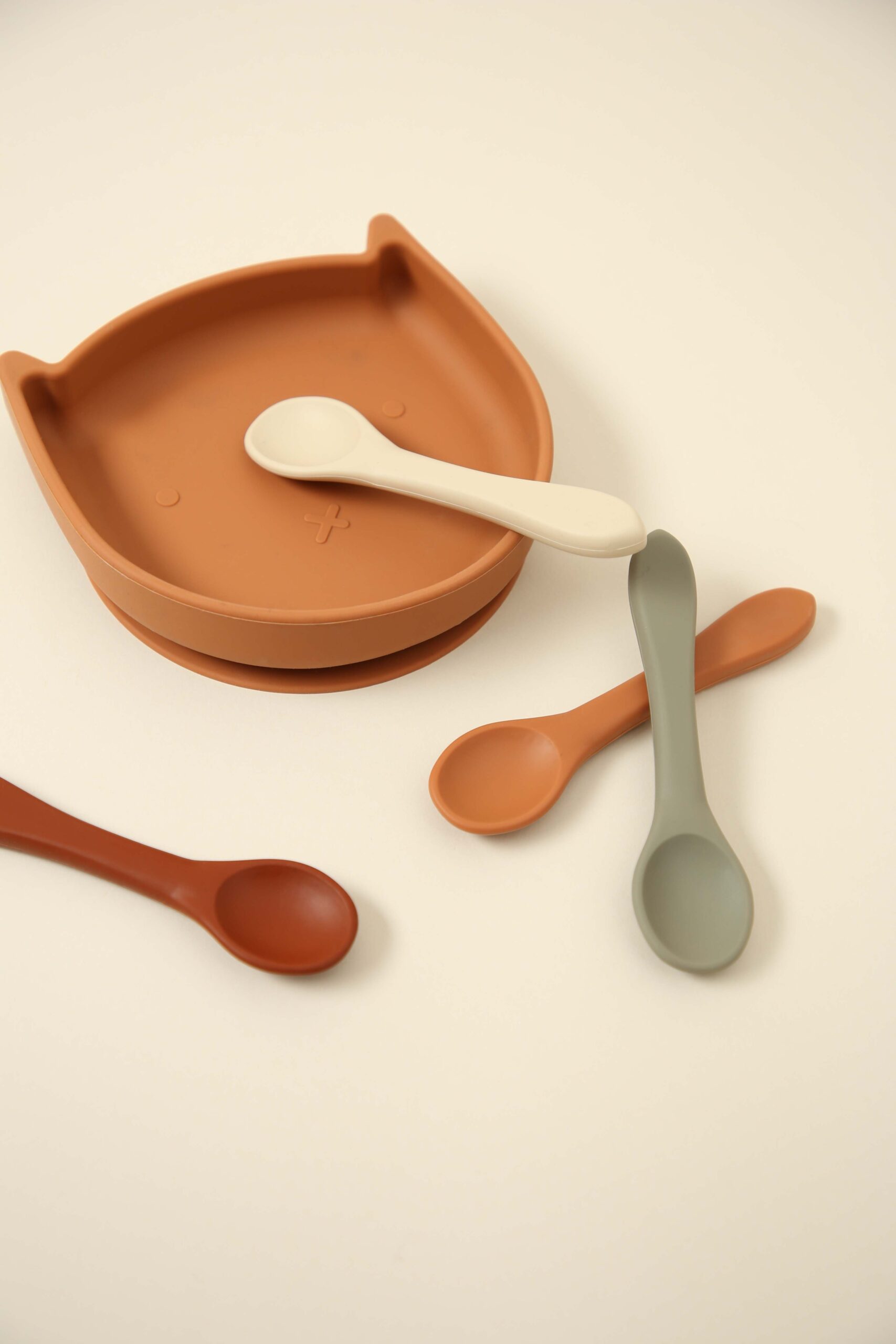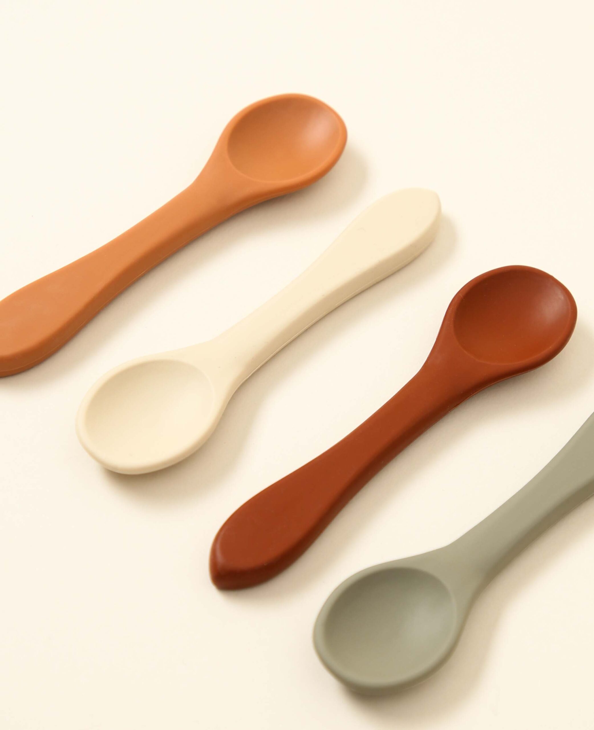 Vierteiliges Löffelset für Kinder aus Silikon, verschiedenfarbig, 14 cm x 1 cm