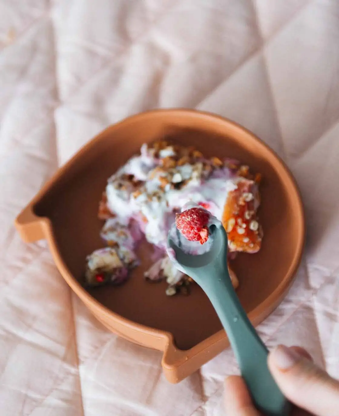 Unsere Silikonlöffel wurden für zahnende Babys und Kleinkinder konzipiert. Die weiche Textur des 100% BPA freien und lebensmittelechtem Silikons schont das wunde Zahnfleisch und unterstützt beim Zahnen. Das leichte und dennoch robuste Silikon richtet beim Herunterfallen oder Spielen keine Schäden oder Lärm an – perfekt wenn die Kleinen um sich werfen. Geschirrspülgeeignet und mikrowellengeeignet.