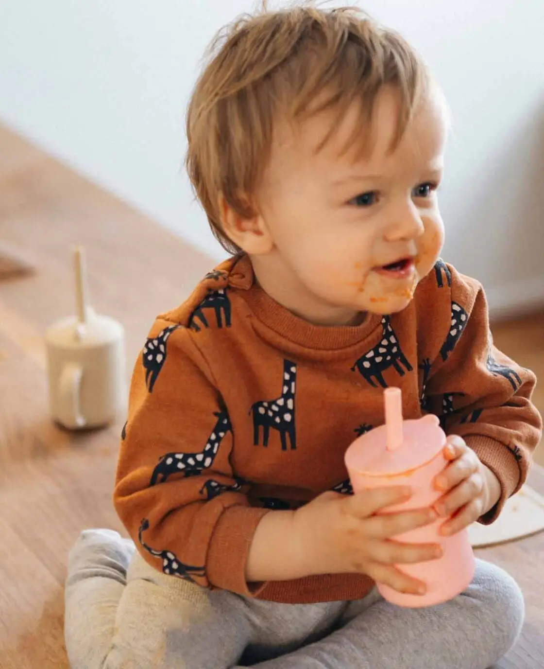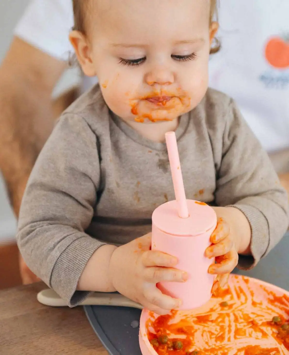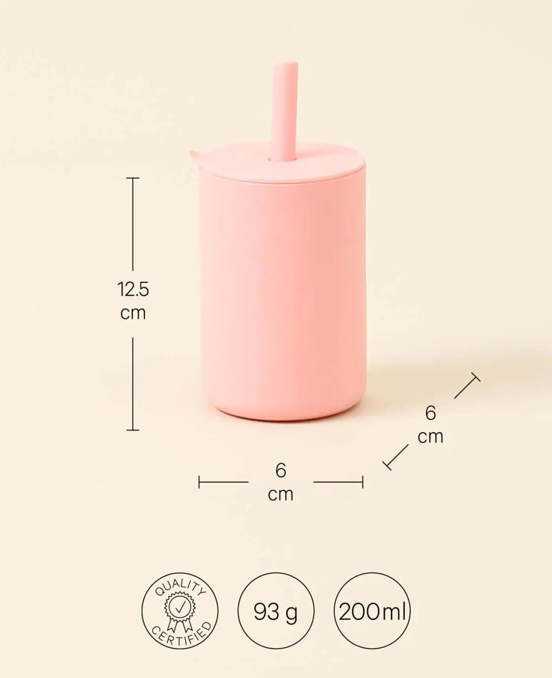 Trinkbecher mit Strohhalm für Kinder in rosa aus Silikon, 200 ml