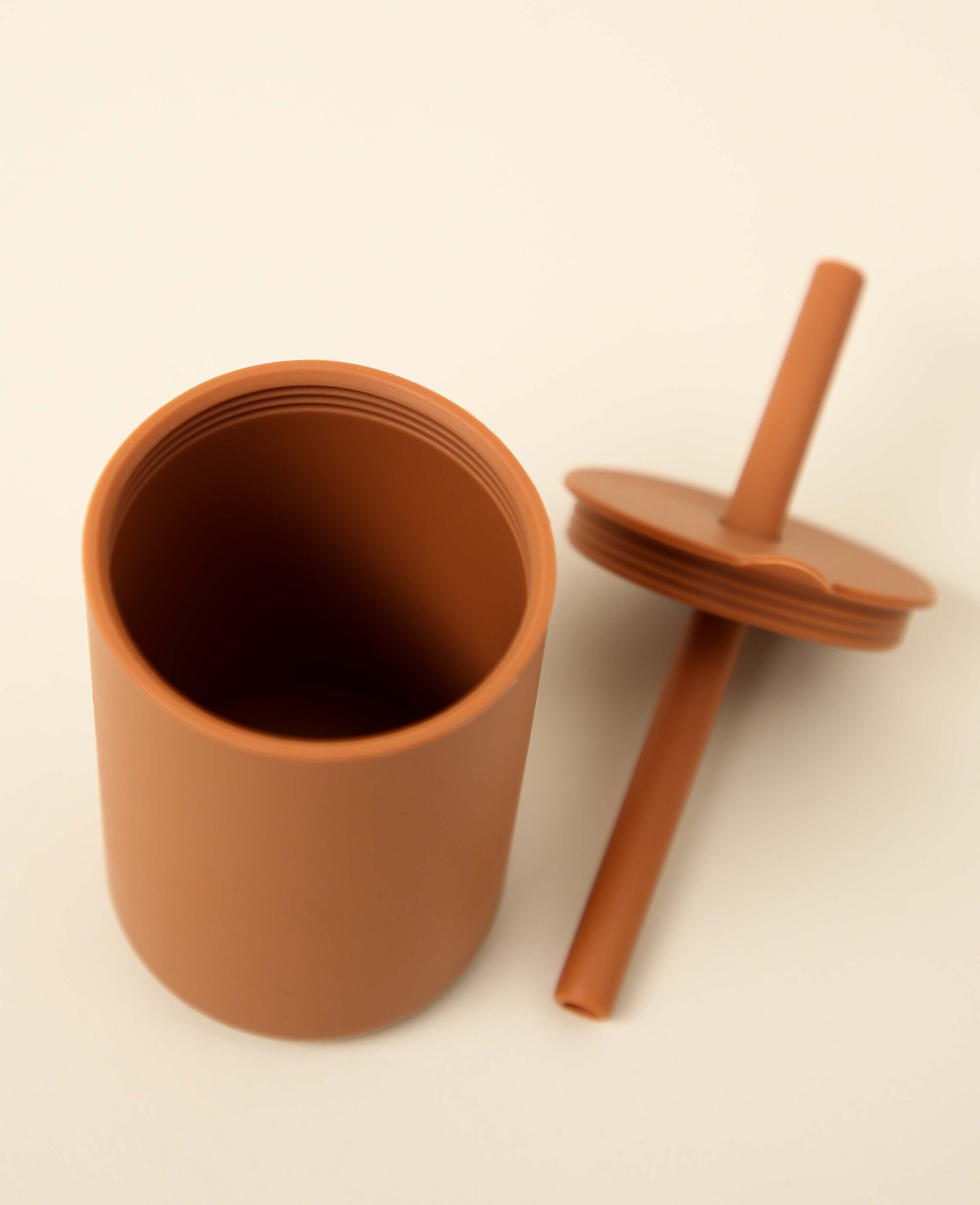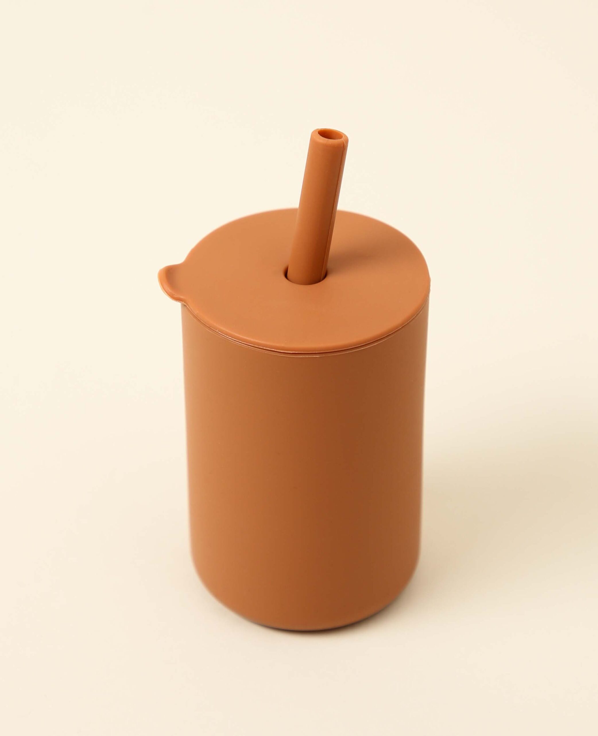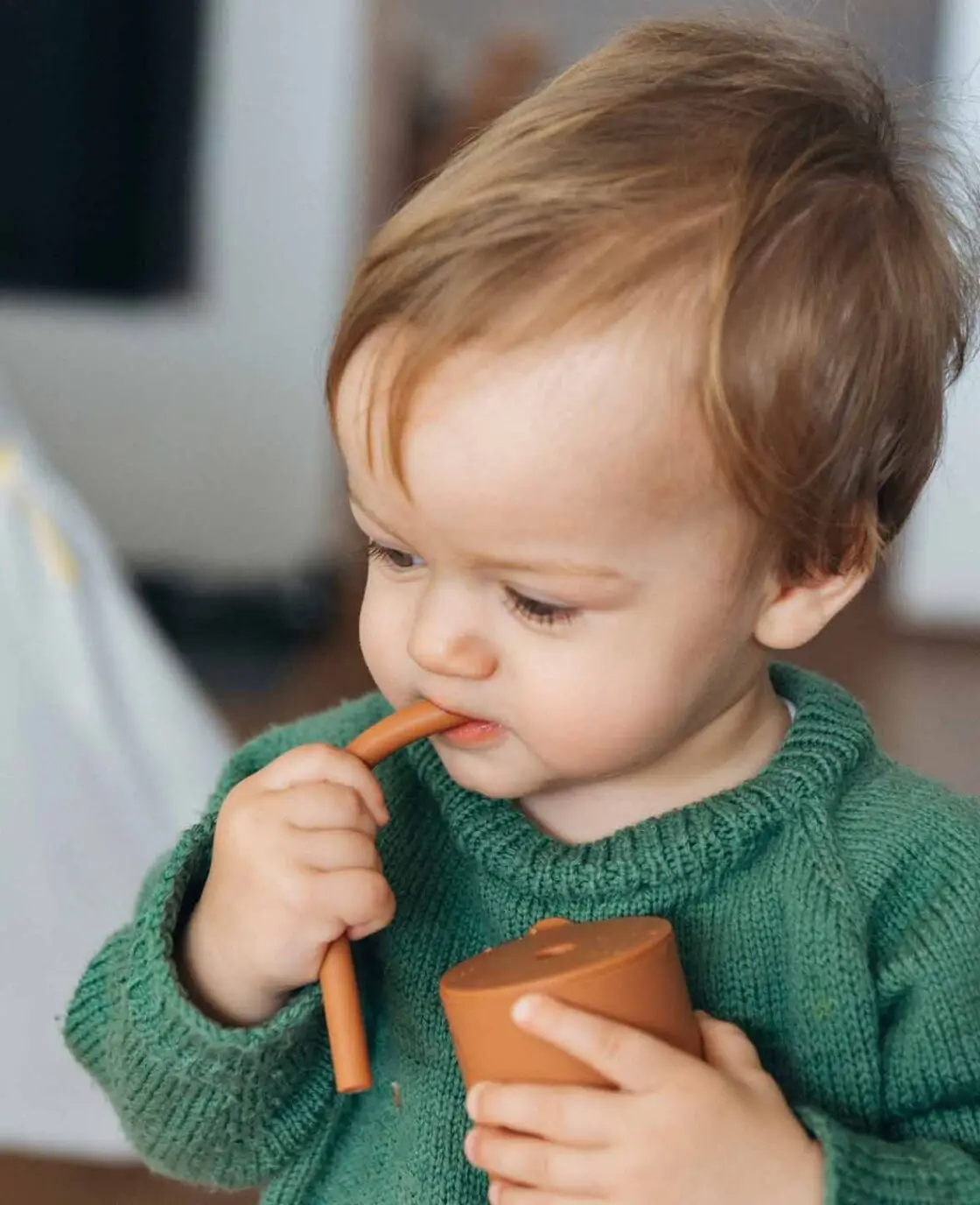 Trinkbecher mit Strohhalm für Kinder in rostrot aus Silikon, 200 ml