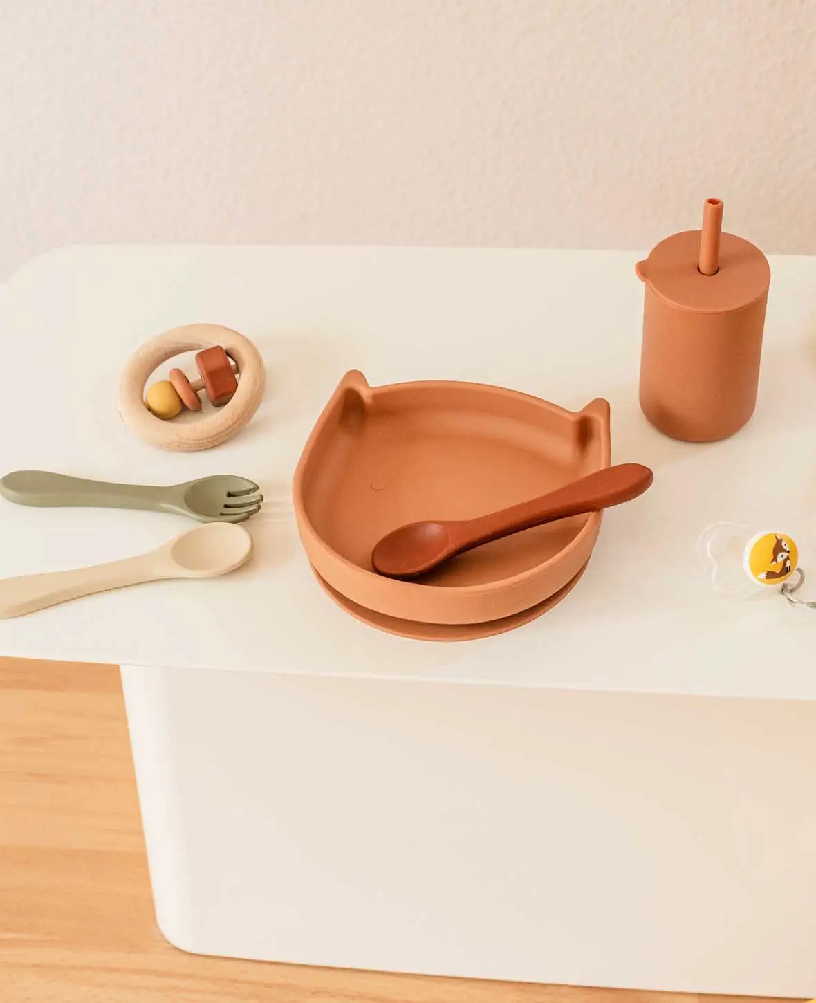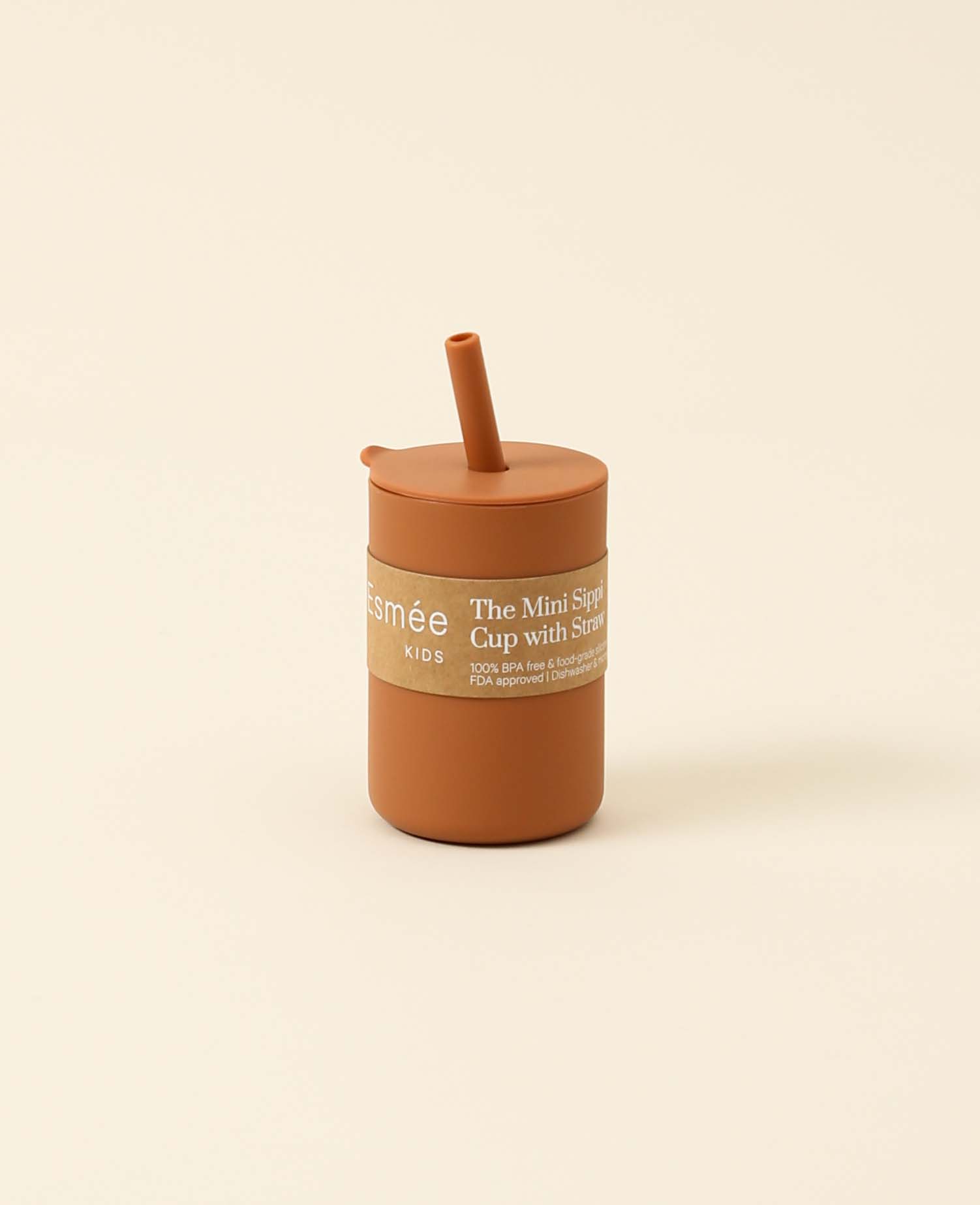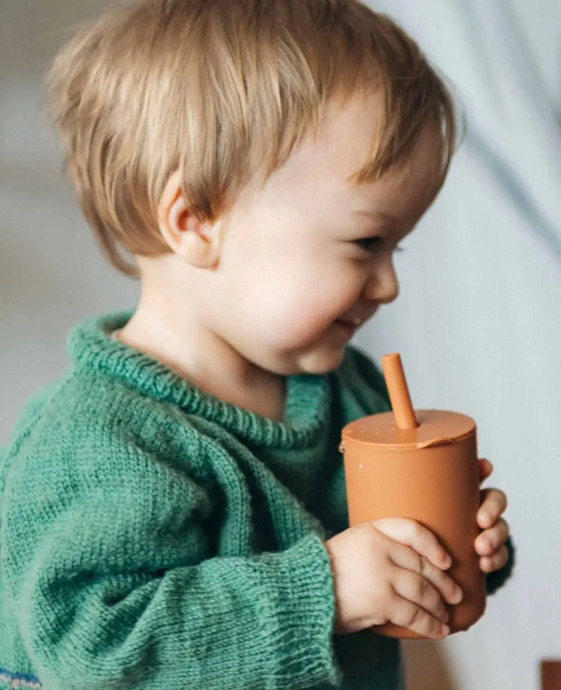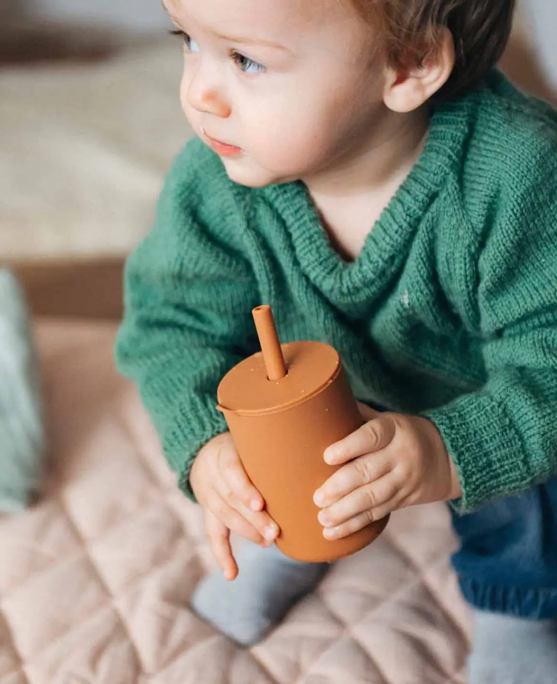 Trinkbecher mit Strohhalm für Kinder in rostrot aus Silikon, 200 ml
