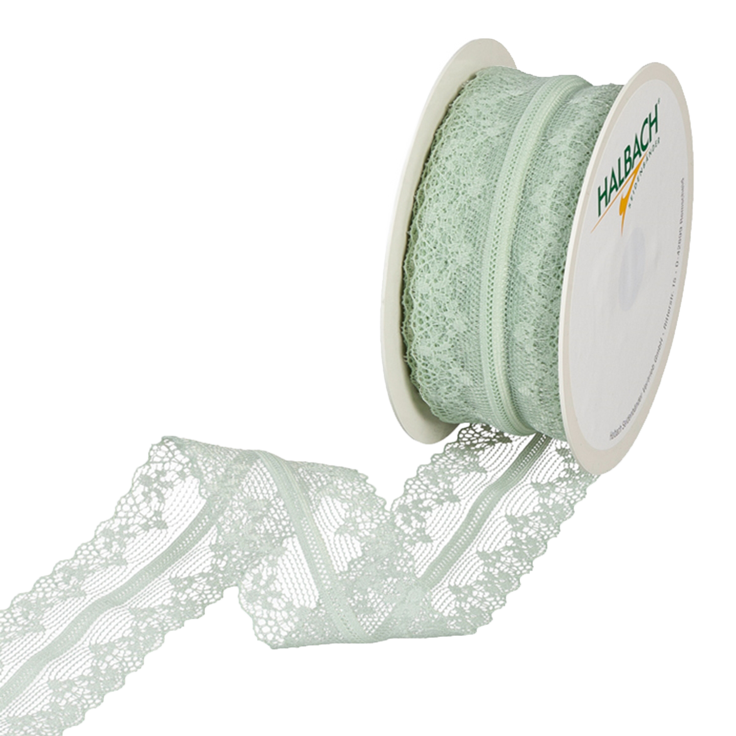 Spitze in der Farbe light mint aus 100% Polyamid 36mm x 15m