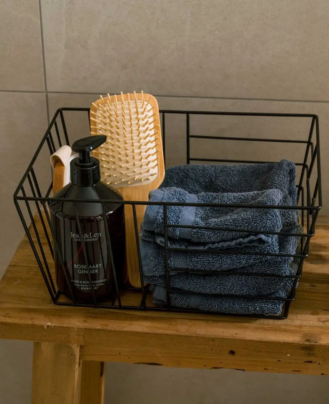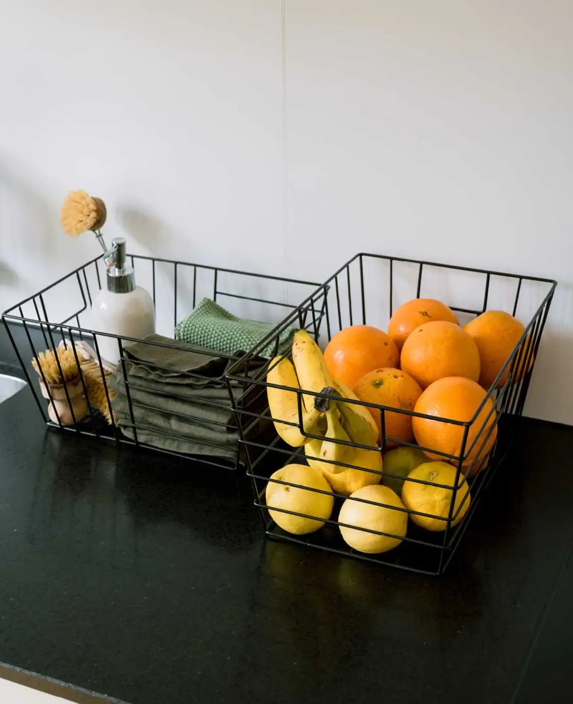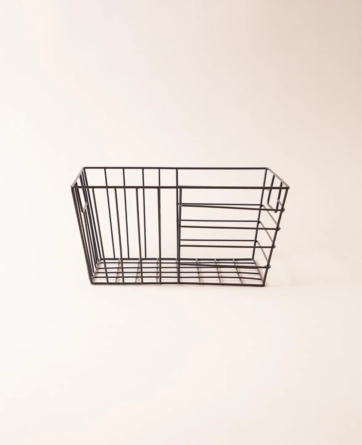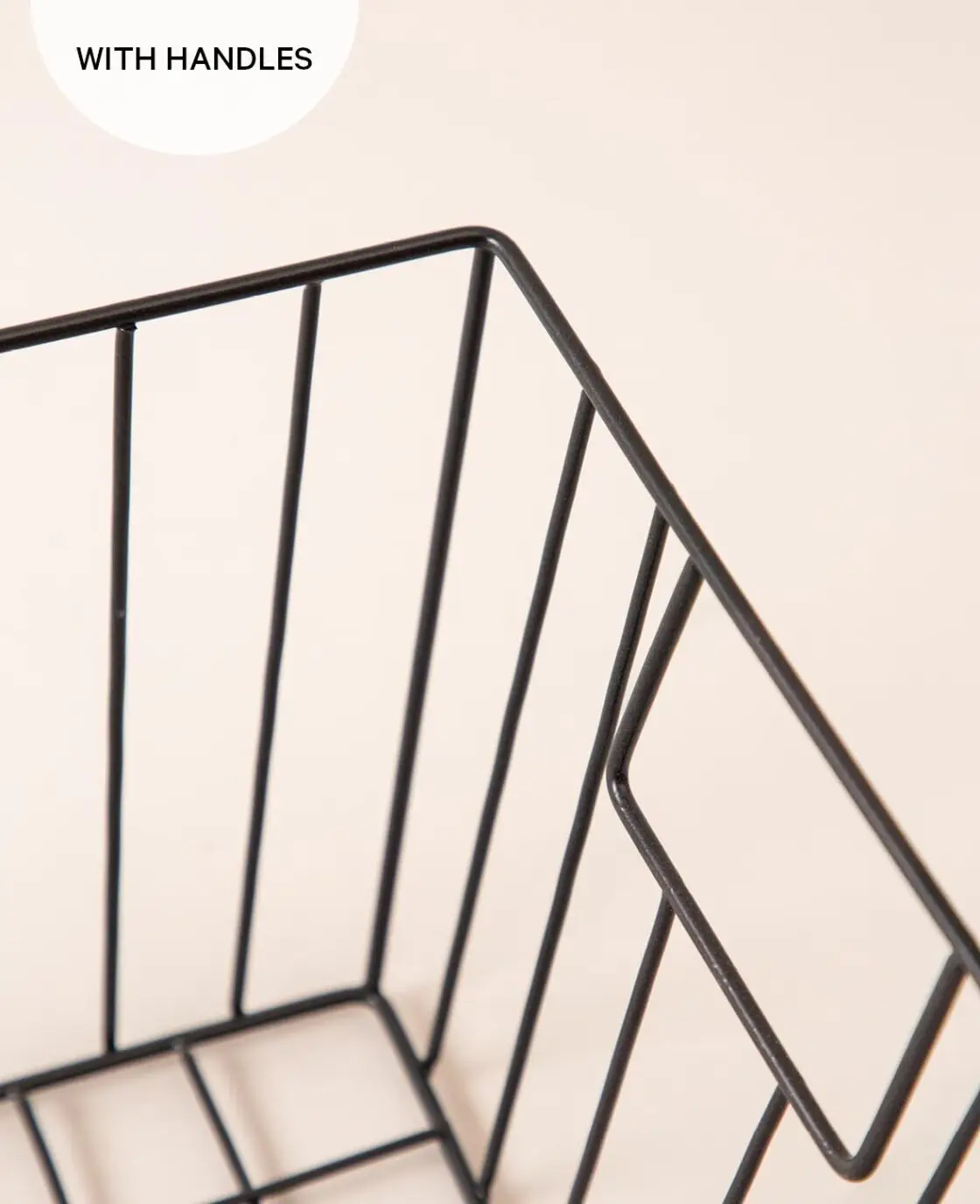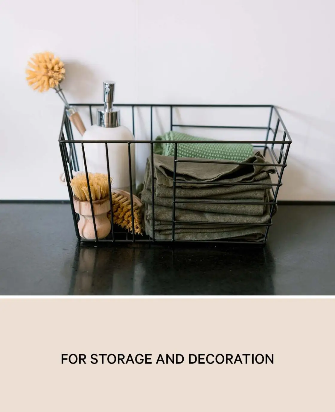 Unser stapelbarer Aufbewahrungskorb aus matt schwarzem Metall vereint minimalistisches Design mit hoher Funktionalität. Perfekt für Küche oder Bad, bietet er praktischen Stauraum.