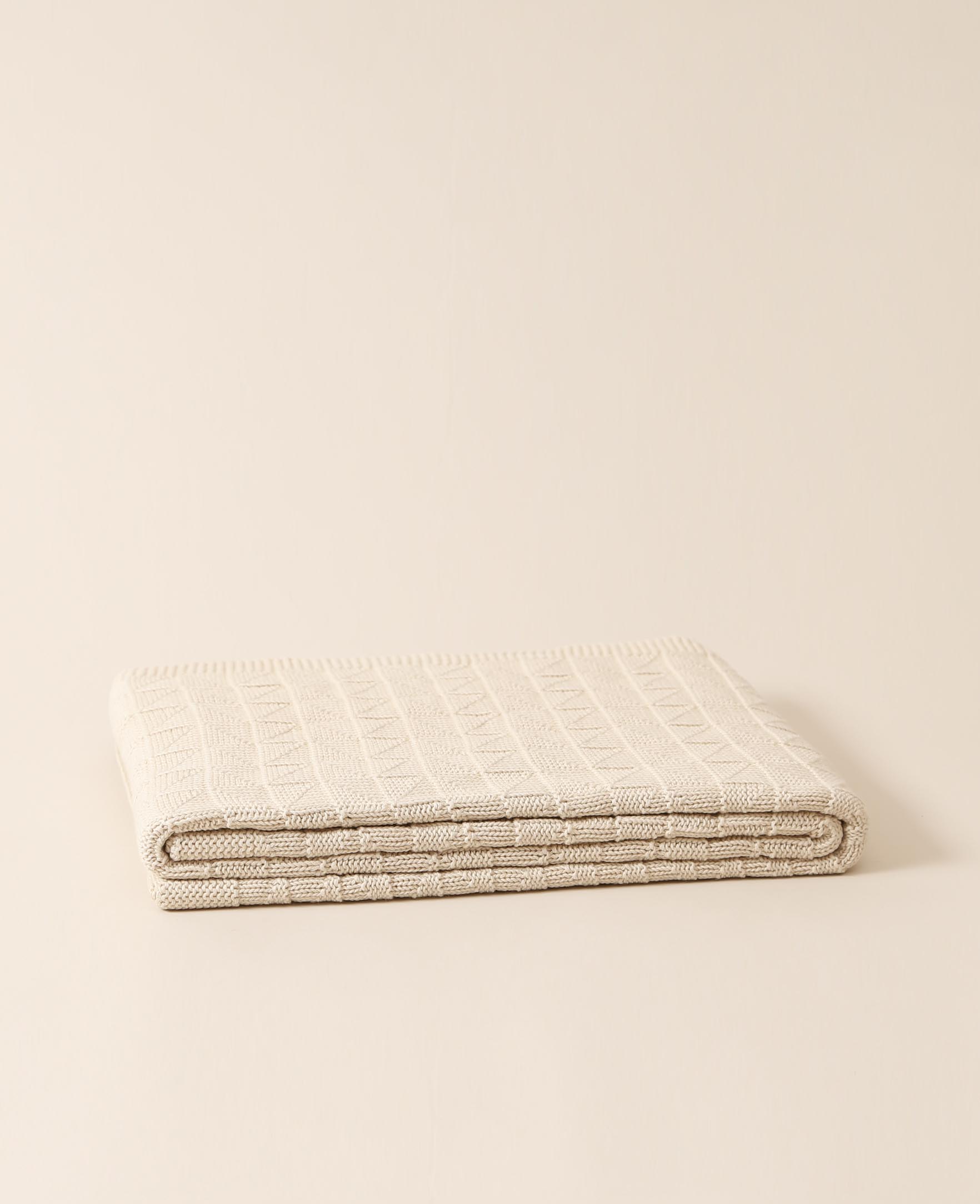 Weiche Strickdecke aus beiger Baumwolle, 130 x 170 cm