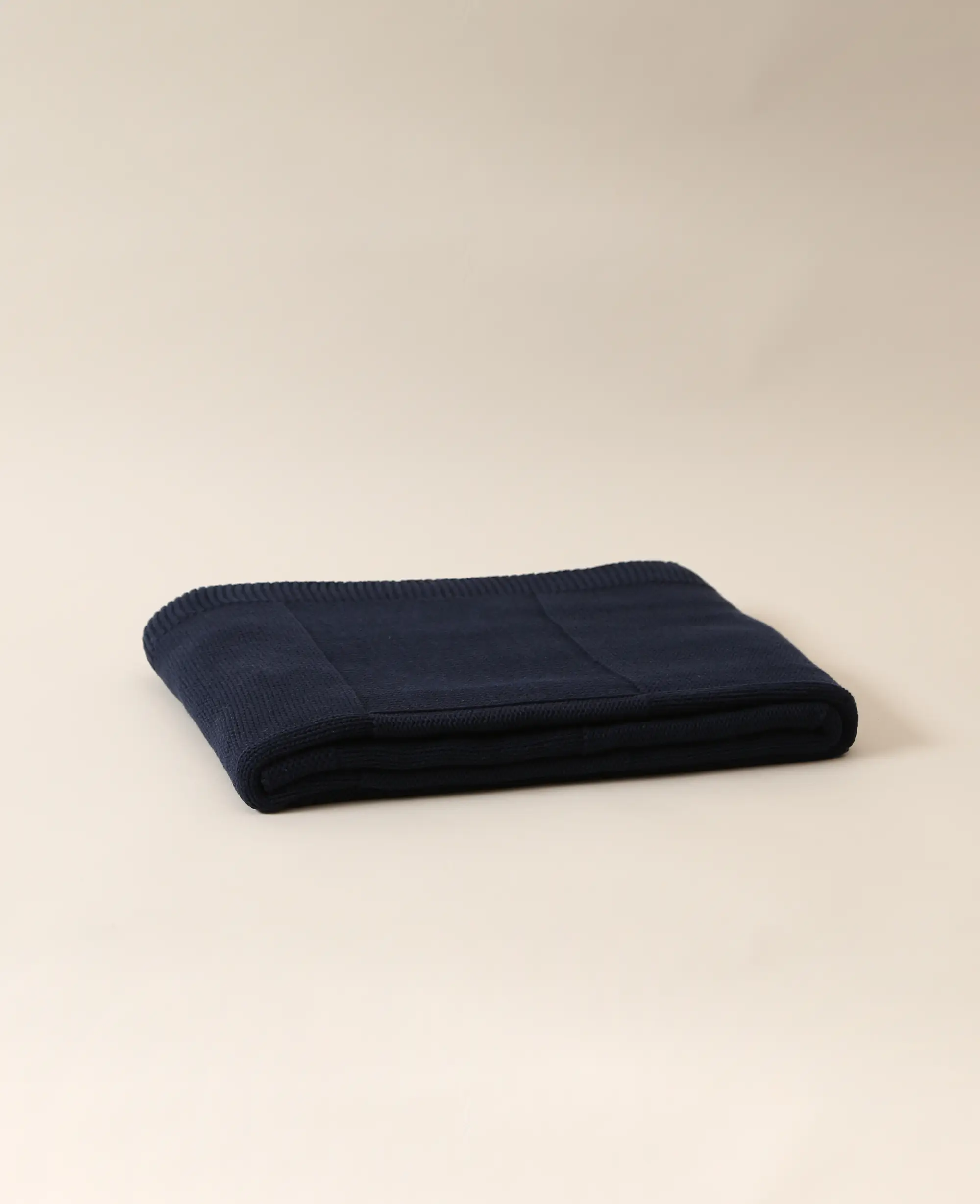 Weiche Strickdecke aus dunkelblauer Baumwolle, 130 x 170 cm