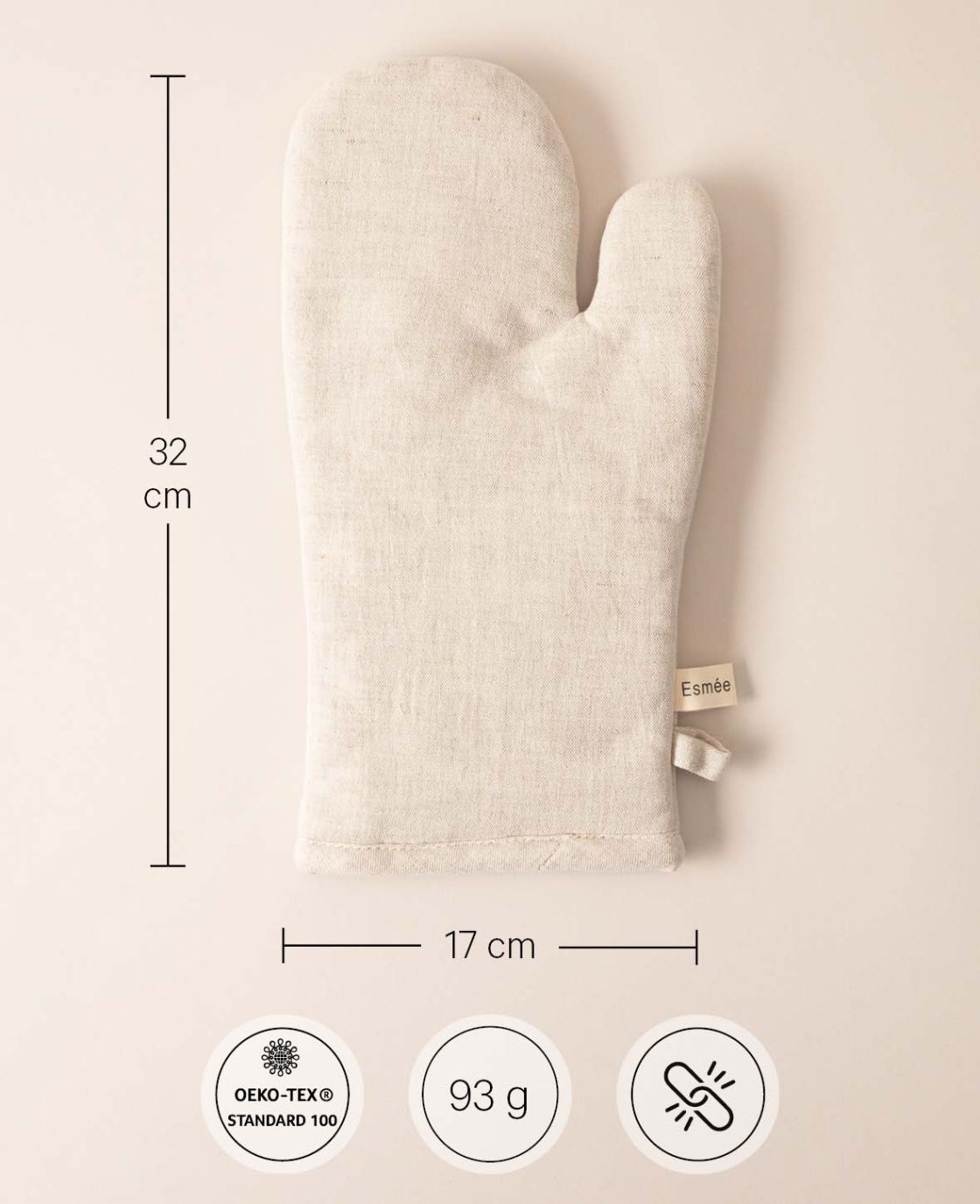 Gant de four “Ted” en mélange de coton et de lin beige, 17 cm x 32 cm