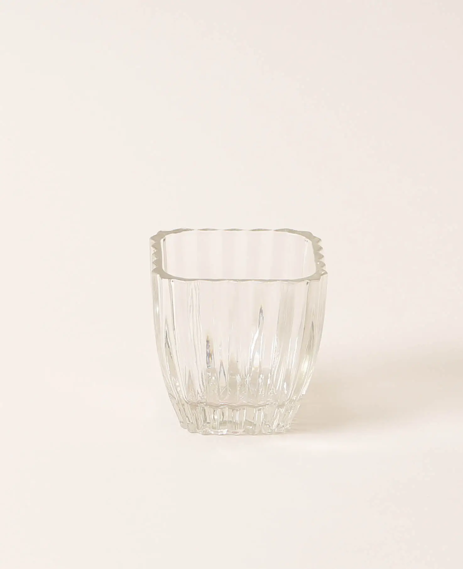 Kleiner viereckiger Teelichthalter / Windlicht aus transparentem Glas mit Struktur, H 8.5 cm