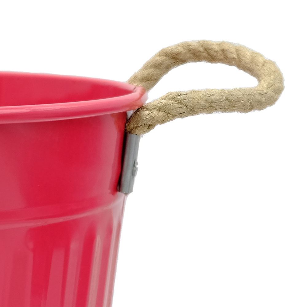 Ce récipient pratique avec ses poignées en corde est un véritable accroche-regard dans ton jardin ou sur ton balcon. Le bac à plantes conique est un seau métallique transformé. Grâce aux poignées en corde, tu peux le saisir facilement et le (re)placer. Dans le fond, il y a un trou qui permet d'évacuer l'eau en excès. Mais tu peux aussi refermer le trou avec un bouchon.