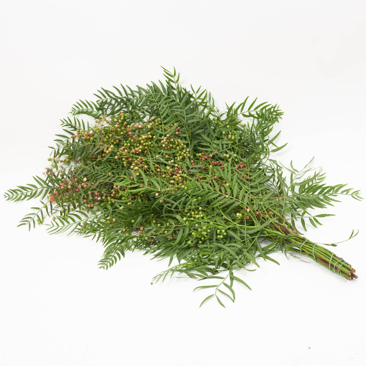 Découvre l'élégance de Schinus molle, également connu sous le nom de "poivrier du Pérou", idéal pour les décorations de Noël et de l'Avent. Ce feuillage d'hiver se distingue par ses feuilles filigranes, allongées et verdâtres et ses baies décoratives qui ressemblent à de petites boules de Noël. Les baies se présentent dans une couleur verte, rose tendre à rouge.