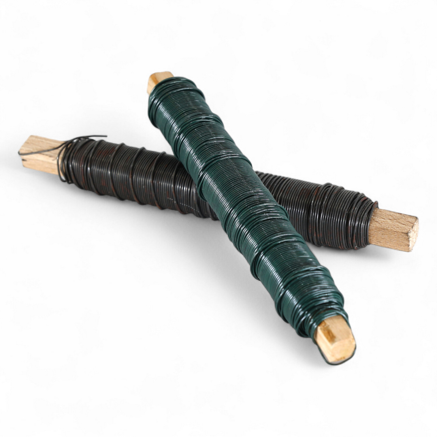 Wickeldraht auf Holzstab – grünlackiert oder blaugeglüht