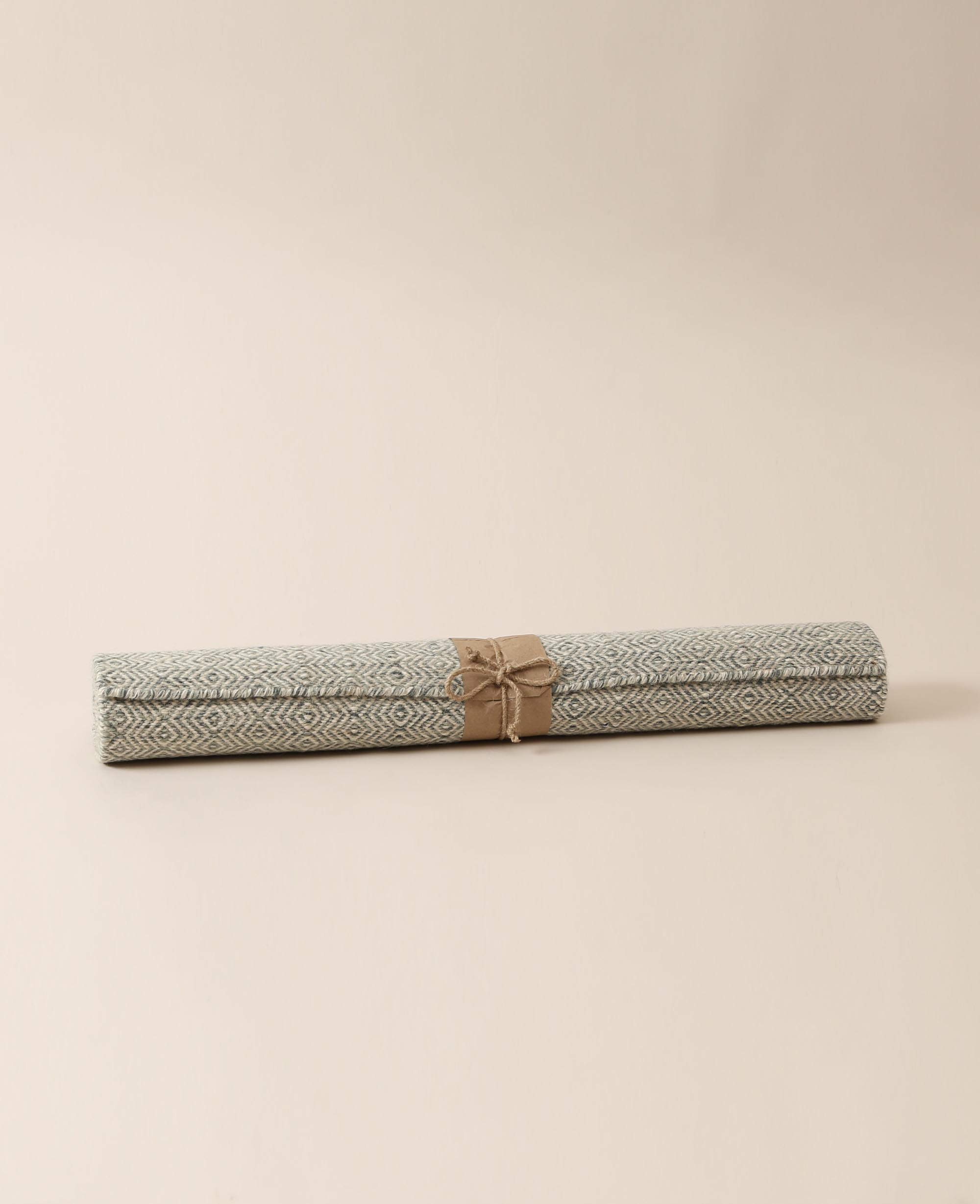 Wollteppich mit salbeifarbenem Ethno Webmuster, 70 x 140 cm