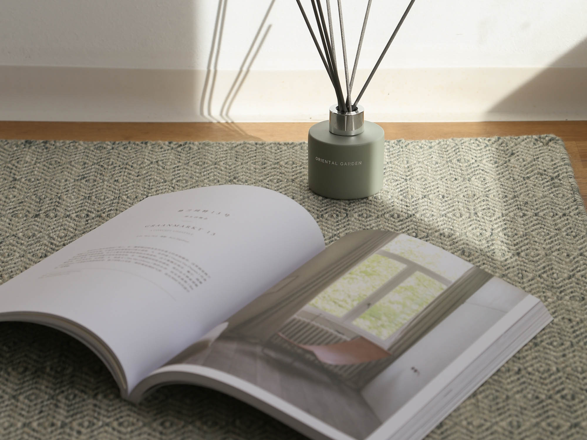 Dieser hochwertiger Wollteppich mit khakifarbenem Ethnomuster, versprüht einen Hauch von Boho-Chic. Die weichen Farben fügen sich beinahe in jeden Raum wunderbar ein.